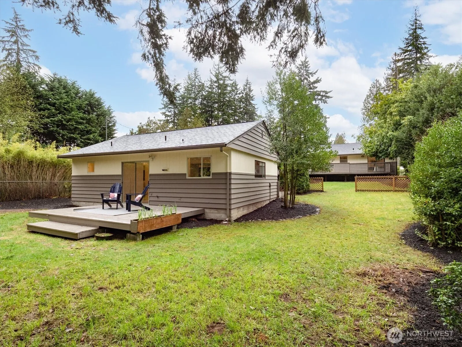 Lovely updated mid-century rambler built in 1955. This 1,192 sqft home shines w/ 3 bedrooms, 1.75 bathrooms & attached 280 sqft garage. Enjoy casual living with the living rm open to the dining room that is just off of the updated kitchen. Lg picture windows bring in light from West facing windows, while the wood burning fireplace is perfect for colder days. Upgrades are countless: new furnace, fresh paint inside & out, new LPV flooring, carpet, furnace, oil tank decom. professionally & so much more! Outside enjoy the large private deck that faces lovely level, private & spacious backyard. Want more? Studio, MIL or office next door? Tucked away on the back of the property is the completely updated 22511 1/2 with 768 sqft. Built in 1960 with 1 bedroom & 1 bathroom. In this turn-key gem, you’ll find open floor plan, more picture windows facing private, level lush views of mature landscaping, new kitchen, electrical panel, flooring, painted inside & out, plus huge private back deck. Short term rental, MIL or tenant ready or perfect home detached office. Both units boast their own dedicated parking, professional landscaping, & private decks for seamless indoor-outdoor living. Located in coveted Westgate neighborhood, minutes from the vibrant Edmonds waterfront. Live or rent to capitalize on a high-yield short/long term rental—the possibilities are endless! Seller procured inspection and sewer scope available upon request.