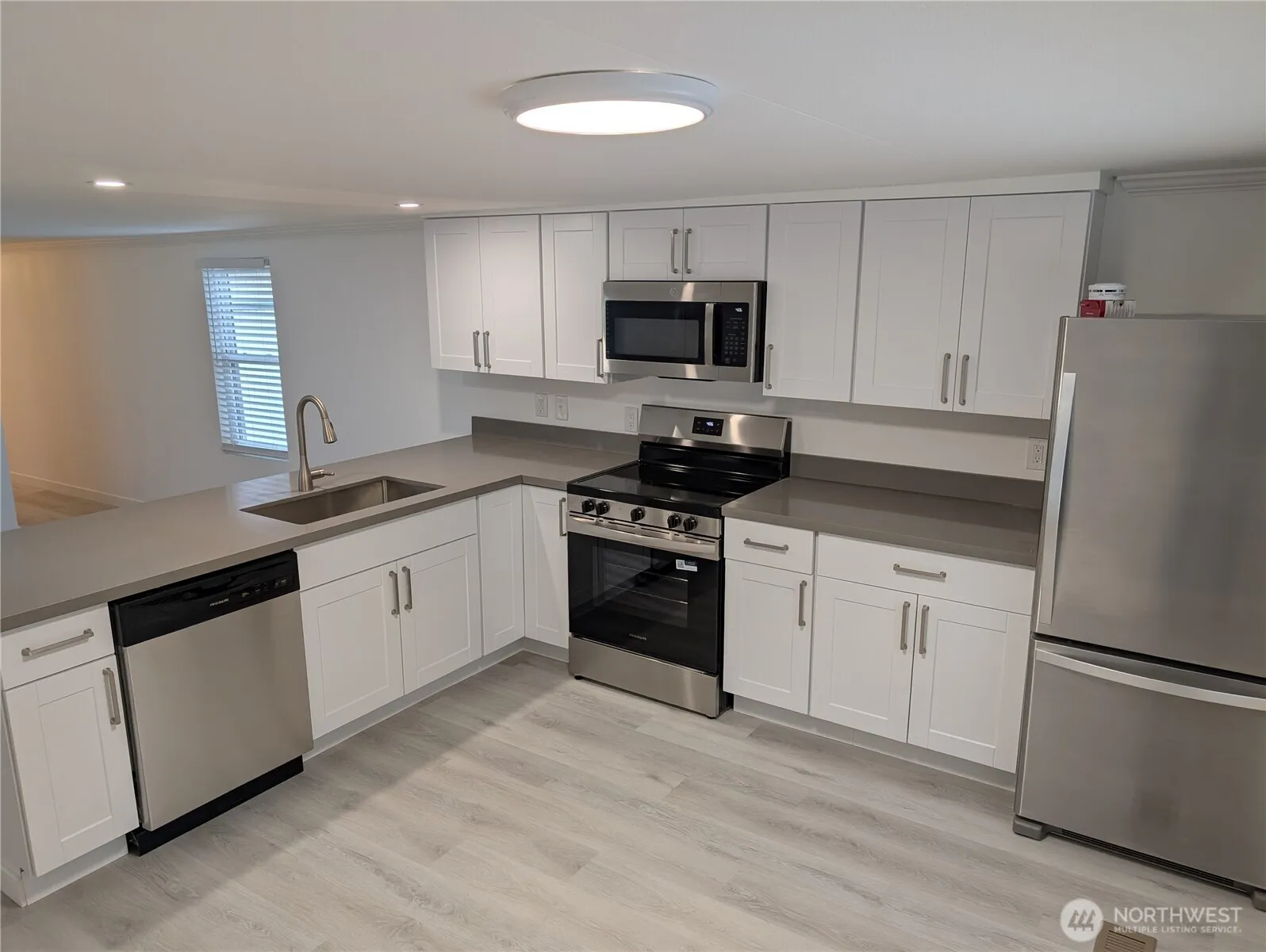 Quiet 55+ park on the Raging River. Park is owner occupied for past 30 years. This home has fresh inside and out. New complete remodel of: sheetrock, flooring, doors, cabinets, fixtures, lighting, appliances and under home insulation all done in last 60 days. Furnace serviced, ducting cleaned and sanitized. Needs nothing. Small indoor dog might be allowed. River access. Close to shopping, restaurants and medical services.