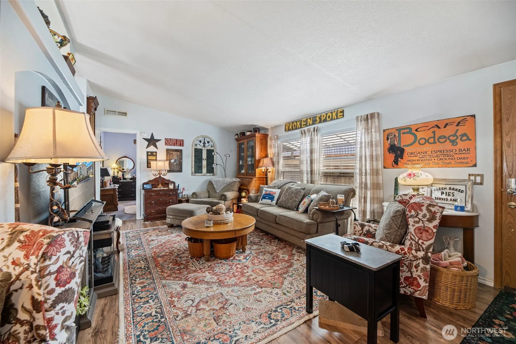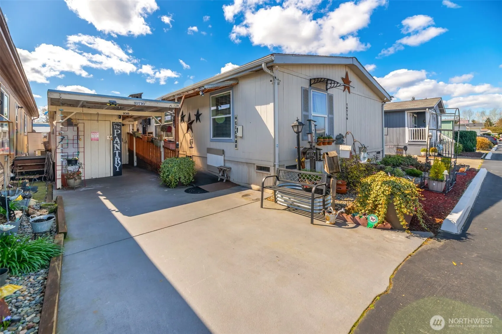 Welcome to Golden Rose, a sought-after 55+ community offering comfort, convenience, and a vibrant lifestyle! This spacious home features 3 bedrooms and 2 bathrooms. The primary bedroom has a huge walk in closet and bathroom with 2 separate showers, one designed for easy step-in accessibility. The vaulted ceiling in the living room adds to the open feel while the large kitchen offers abundant storage, a center island, skylight, and a generous dining area. All kitchen appliances are included, along with an additional freezer in the laundry room, plus washer and dryer. Additional features include ceiling fans throughout the home, two storage sheds in the carport, and convenient covered access. Stay comfortable year-round with a heat pump, and enjoy relaxing on the covered deck no matter the season. Golden Rose offers fantastic amenities including a riverside park with BBQ areas, clubhouse, fitness room, art center with ceramics studio, RV parking, laundry facilities, and even an off-leash dog park. Conveniently located near Hwy 512 with easy access to shopping and entertainment.