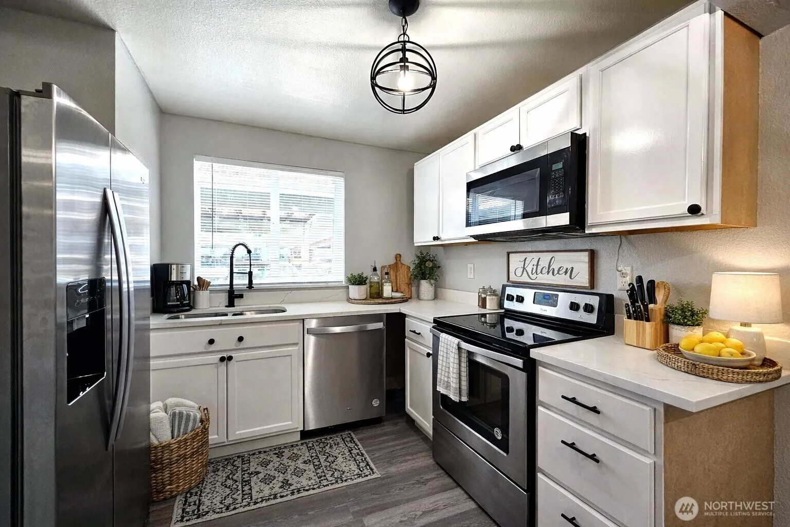 Remodeled and move-in ready in Country View Condominiums. This 2-story condo offers a comfortable layout with living, dining, kitchen and a main-level half bath, plus 2 bedrooms, a full bath, and an upstairs utility area. The remodeled kitchen and baths give the home a fresh, updated feel, and the hard-surface flooring throughout means no carpet. LVP downstairs and on the stairs, with wood laminate upstairs, adds style and easy upkeep. Enjoy your own private fenced patio/backyard space for relaxing, gardening or pets, plus covered parking for added convenience. HOA dues include water, sewer and garbage. Pet-friendly condo living with up to 3 total pets allowed, dogs or cats. Tucked into a more suburban-feeling setting with quick access to Hwy 512, I-5, JBLM, shopping and everyday services, and within walking distance to local schools with pedestrian bridge access over Hwy 512. A smart option for buyers looking for affordability, function, a remodeled interior, and a convenient Tacoma location with a more suburban feel.