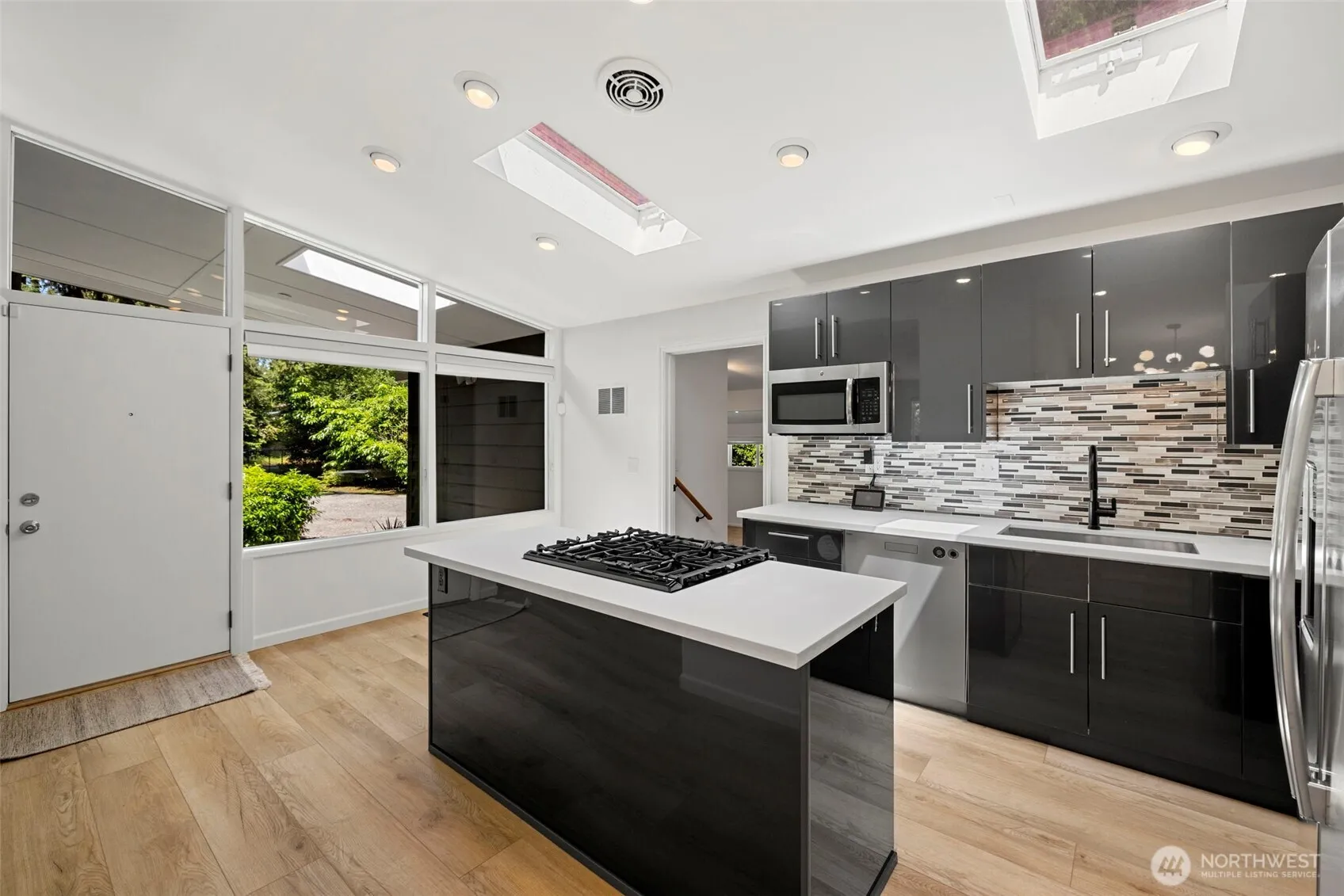 Nestled on over an acre of peaceful privacy, this beautifully updated mid-century modern rambler offers a rare lease opportunity in the heart of Woodinville. Filled with natural light, this 3-bedroom, 1.75-bath home features skylights, modern finishes, and seamless indoor-outdoor living with a large newer deck overlooking the expansive 1.1-acre fully fenced yard perfect for relaxing, entertaining, or enjoying the tranquil surroundings. The inviting living room centers around a cozy wood-burning fireplace, while the chef’s kitchen offers gas cooking, a generous island, and abundant storage. The spacious primary suite features a large walk-in closet with custom organizer and private en-suite bath includes dual sinks, a walk-in shower, and sleek white modern cabinetry. An oversized third bedroom, full bath, brand-new washer and dryer, private 2-car carport, and storage shed add comfort and convenience. Enjoy quiet, private living just minutes from Woodinville’s dining, shops, and wineries, with easy access to 405 and 522, all within the highly sought-after Northshore School District an exceptional opportunity to lease a stylish retreat with space, privacy, and modern comfort.
