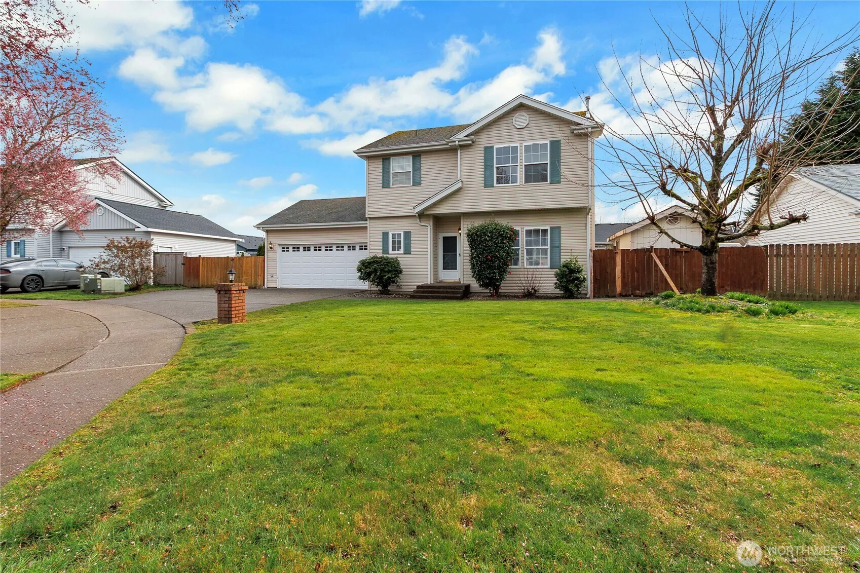 HUGE PRICE REDUCTION. Welcome to this charming home on a quiet cul-de-sac in the heart of Orting! The house features 3 bedroom 2.5 bathrooms, 1527 sq/ft. Step inside to a light-filled interior featuring an open-concept layout and a spacious living room with a gas fireplace perfect for chilly days. The kitchen is designed for both everyday living and entertaining, with ample counter space, cabinetry, and a seamless flow into the dining and living areas. The primary bedroom provides a relaxing retreat with generous walk-in closet space and a private bath, while additional bedrooms offer flexibility for guests, a home office, or hobbies. A new roof was installed in April 2026. The private backyard with a covered patio is perfect for entertaining, BBQ gatherings, gardening, or simply unwinding. The fully fenced side patio provides a secure and convenient space to park your RV or boat. Conveniently located near parks, schools, stores, a dog park, and a playground is within walking distance. A new gas furnace in 2023 and a new water heater in 2024 were installed.