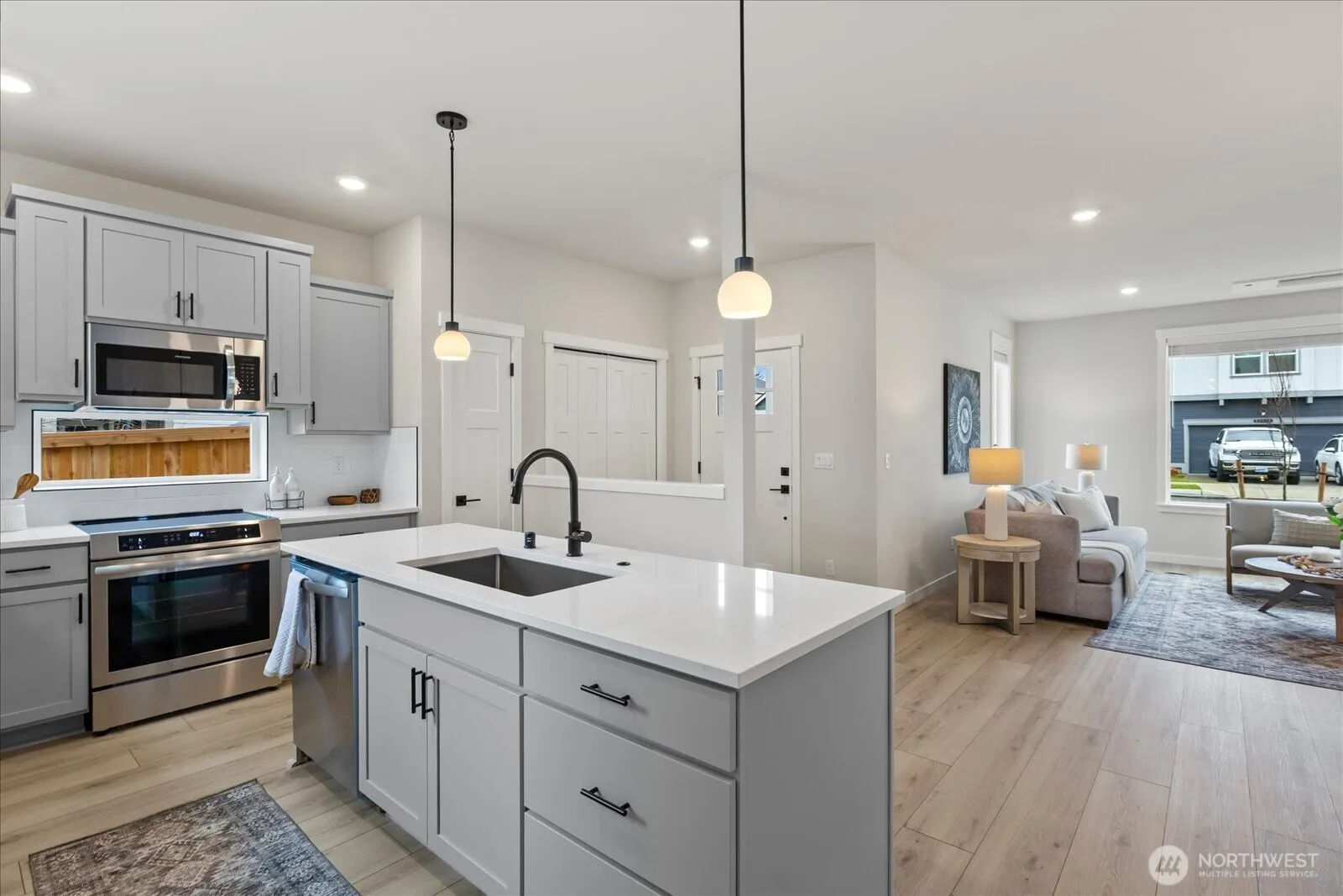 Welcome to Bakerview Townhomes by Lungren Homes! This fantastic modern, 4-bedroom, end-unit townhome features great room; contemporary kitchen with Quartz countertops; Full-height tile backsplash in the kitchens; LVP throughout the main floor; Shaw carpeting with 6-lb pad on the stairs and 2nd floor; private patio and calming primary suite with spa-like connecting bath. Use the 4th bedroom as flex space for a home office or playroom and extra storage. The 2-car, side-by-side garage offers further convenience. Parks and picnic shelters within the community provide areas for relaxation, exercise and gathering with friends. Builder registration policy: Buyers must register their broker on their first visit to the community for their broker to receive the published commission.