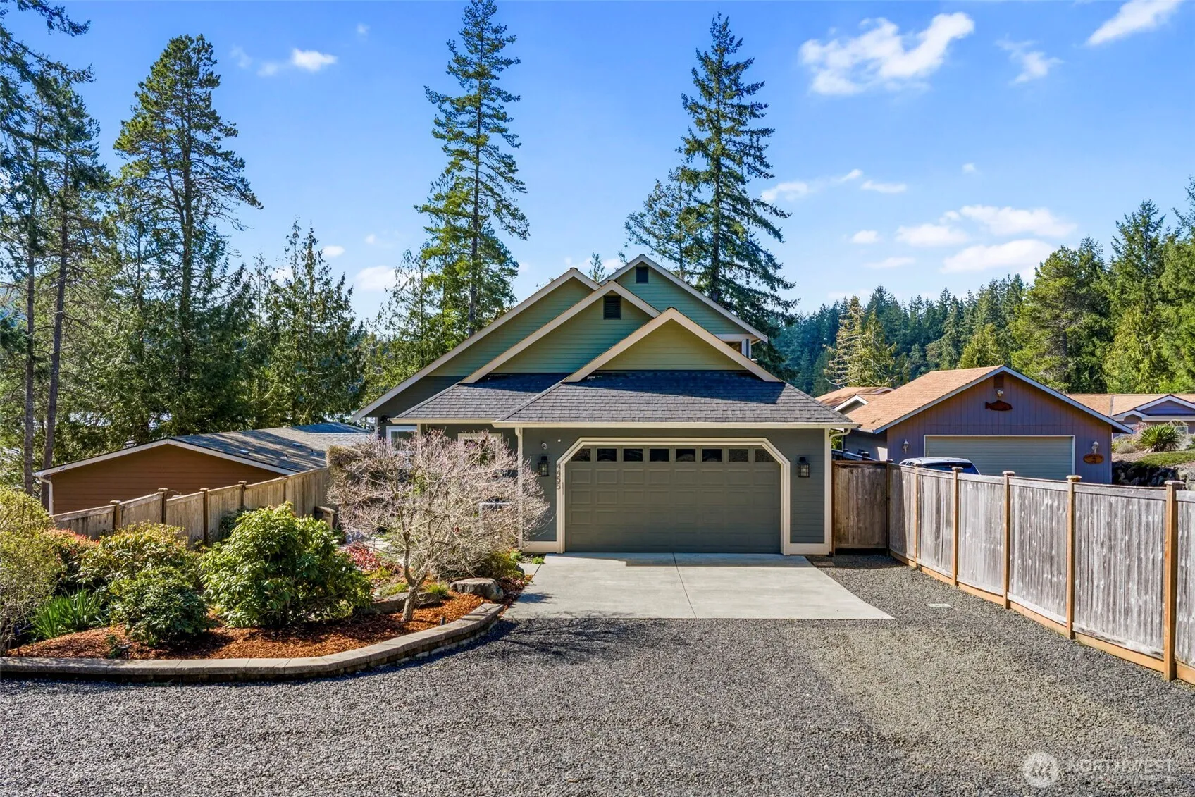 Stunning 3 BR + Bonus Wildcat Lake custom home with dock! A truly fantastic home and property. Beautiful hardwoods on main floor and 9′ ceilings throughout. Jaw dropping light filled living room with gorgeous lake views, 2 story west facing wall of windows, cathedral ceiling & gas fireplace. Massive designer kitchen is inspiring space, ready for entertaining with quartz counters, stainless appliances, 6 burner high performance Cafe’ gas range & large island. Main floor primary suite and newly updated spa bath with all the important things: heated floors lighted mirror, custom shower & pretty soaking tub. Huge 16′ x 22′ main floor media room could be epic game room. Second floor primary with ensuite has loft area with incredible lake views. Tons of storage space over garage. Bonus room off garage perfect for home office or gym. Wood wrapped windows with Hunter Douglas blinds. Trex decking with ample covered space for year around grilling. A/C for warm summer days. Professional landscaping with sprinkler system. Can’t wait for sunshine summer fun! Gathering with loved ones, lakeside campfires and fishing off the floating dock. Big flat upper yard with storage shed. Large deep lot with plenty of parking + RV parking. Just 10 scenic minutes from Silverdale. Central Kitsap Schools!