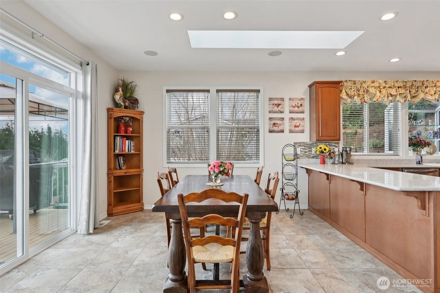 Perched in the highly sought after Cavalero Hills community, this 3,200 sq ft daylight rambler offers sweeping views of the Sound and Cascade Mountains, creating a serene backdrop for everyday living. Designed to capture natural light, the spacious living room features a dramatic wall of windows and a cozy gas fireplace—perfect for relaxing while taking in the scenery. The gourmet kitchen is a true centerpiece, boasting rich cherry cabinetry, expansive quartz countertops, and abundant prep space, seamlessly flowing into the adjoining dining area—perfect for entertaining or casual meals. The main floor primary suite offers convenience and comfort, complete with a private slider opening to the view deck, where you can enjoy morning coffee or evening sunsets. A dedicated office provides flexibility for remote work or creative pursuits. Downstairs, a generously sized bonus room offers endless possibilities. Media room, guest quarters, or recreation space. Situated on a generous sized lot with a rolling lawn and mature fruit trees. Ideally located near the community trailhead and beach access, this home combines peaceful living with easy access to nature—an exceptional opportunity in a coveted neighborhood.