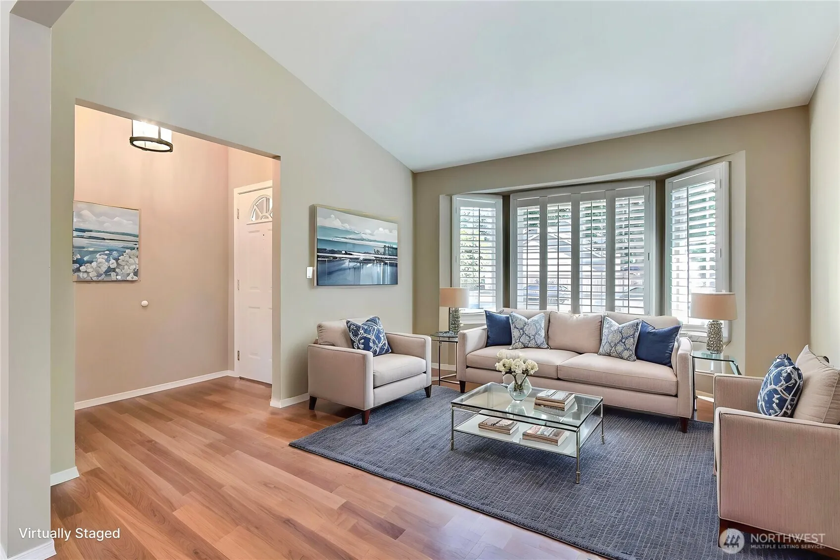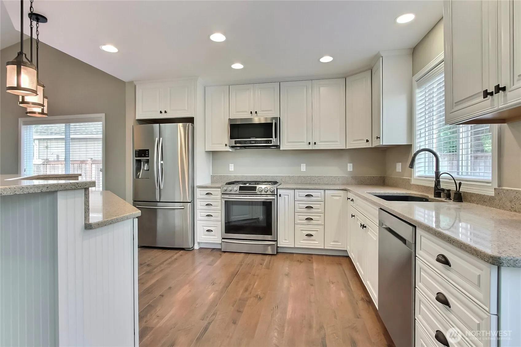 Gorgeous RARE rambler home in Lacey’s Brookfield section of Lake Pointe! Vaulted ceilings & open concept design give it spacious feel. Top quality details abound including plantation shades & solid core doors. Brand new roof! Recently updated chef’s kitchen features quartz counters, new matching SS appliances, instant hot water, raised soffit, Bay View quiet close cabinetry & fresh interior paint throughout. New 95% high efficiency furnace & central A/C in 2018. The primary suite offers double closets, new tile flooring, updated toilet, mirror, cabinetry & fixtures. Landscaped yard just refreshed, new rear stoop. An exceptional home in a prime community location. Act fast and ask your broker to tour today!