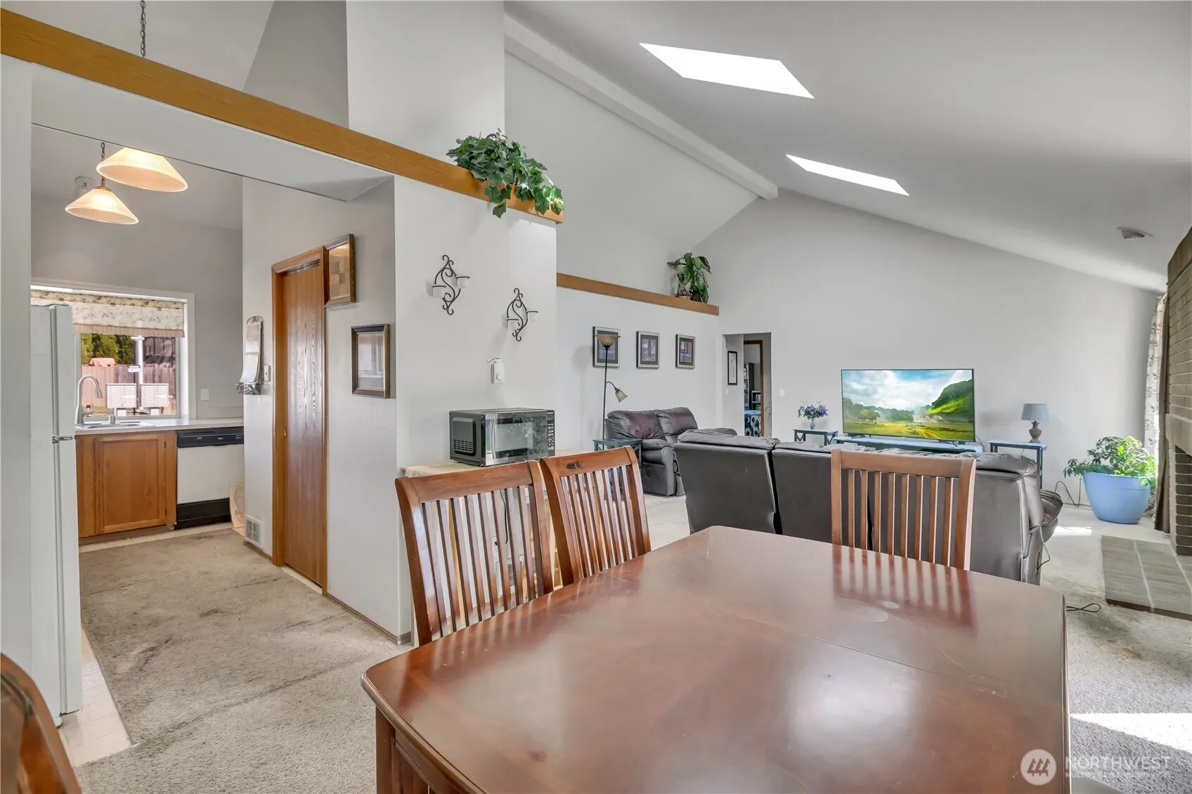 Welcome home to easy, one-level living in a setting that truly feels like home. This inviting 3-bedroom, 2-bath rambler features vaulted, open-beam ceilings and skylights that fill the space with natural light, creating an airy, comfortable atmosphere throughout. The spacious layout includes a large dining area designed for gathering—perfect for hosting holidays, dinner parties, or everyday moments around a full-sized table. The primary suite offers both comfort and functionality with a walk-in closet and a beautifully updated bathroom featuring a brand-new handicap-accessible tub. Both secondary bedrooms are large too! Step outside to a generous covered back porch, ideal for year-round enjoyment—whether you’re sipping your morning coffee or winding down in the evening. The fully fenced and cross-fenced yard provides flexibility for pets, gardening, or simply enjoying your own private outdoor space. Additional highlights include a two-car garage, a newer 4-year-old roof, and a location in a wonderful, established neighborhood that adds to the home’s overall appeal. This is a home designed for comfort, accessibility, and easy living—ready to welcome its next chapter.