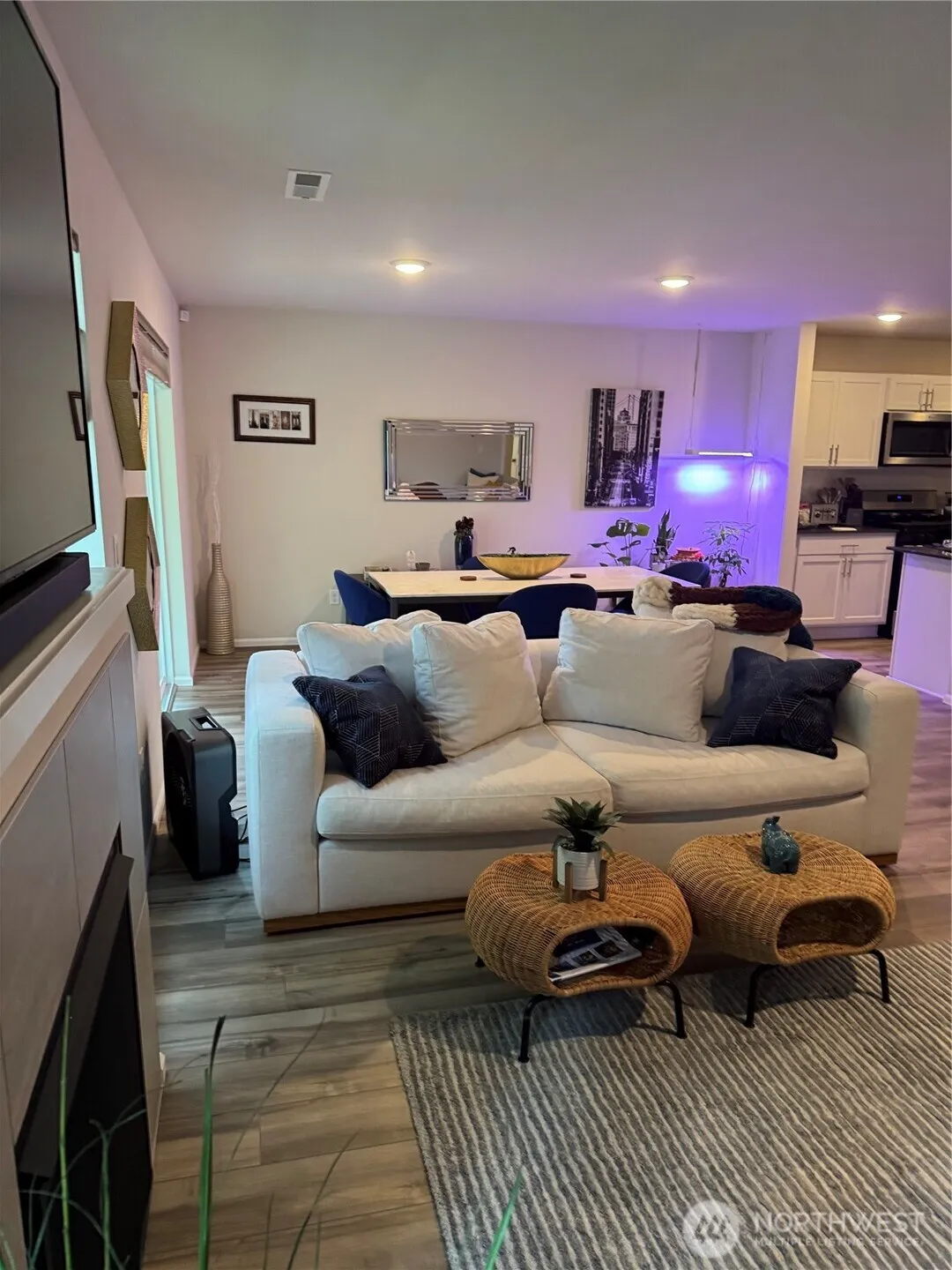 Modern One-Level Living at Its Finest! Tumwater School District- walk the kiddos to Peter G Schmidt Experience the perfect blend of style and convenience in this stunning 3/2 1,725 sq. ft. rambler. Open concept family style living. Chef-style kitchen, walk-in pantry, counter seating, dining room, and gas fireplace. Perfect for gatherings. Enjoy durable LVP flooring through the main living areas and plush carpet in the bedrooms. 5 setting LED canned lighting, Ring doorbell w/remote, honeycomb top-down/bottom-up shades throughout. Pre-plumbed for utility sink in laundry room. Complete with a covered patio for year-round outdoor enjoyment, a high-efficiency heat pump with AC, and a fully landscaped yard. Move-in ready with all appliances included! Seller will include furnishings (new-west elm) with full price offer.