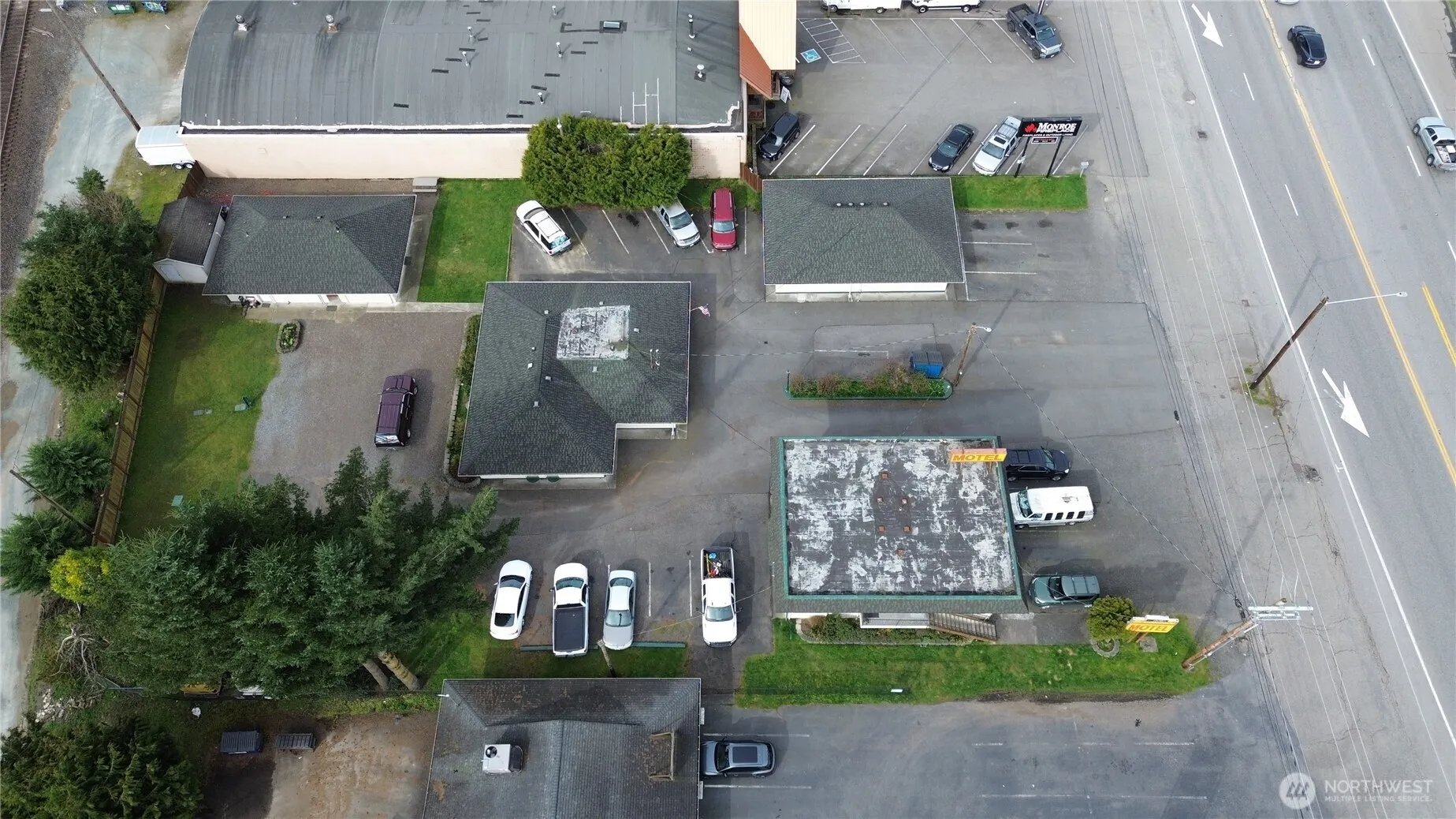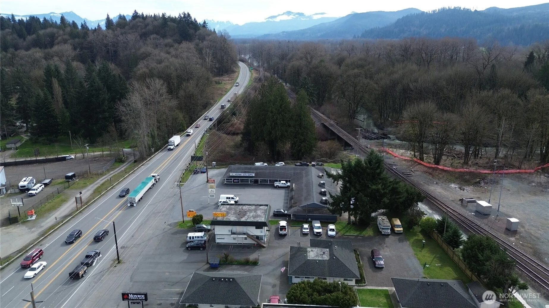 Prime Highway 2 Commercial Redevelopment Opportunity with Existing Income on .58 acres. Zoned General Commercial, this high-visibility property benefits from approximately 22,000 vehicles per day along the busy Highway 2 corridor, providing excellent exposure for future commercial uses. The site offers strong potential for redevelopment including retail, restaurant, office, or mixed-use projects. Currently operating as a 19-unit motel with weekly rentals, the property generates interim income while future plans are developed. Utilities are already on site and the larger parcel size offers flexibility for redevelopment, expansion, or repositioning. Conveniently located in Monroe along a major commuter and recreation route connecting Everett, Monroe, and Stevens Pass, with nearby shopping, dining, and services. Rare opportunity to acquire a larger commercial parcel with strong visibility, existing income, and long-term development potential. Pro Forma Financials indicate an estimated 13% CAP RATE based on projected stabilized operations.