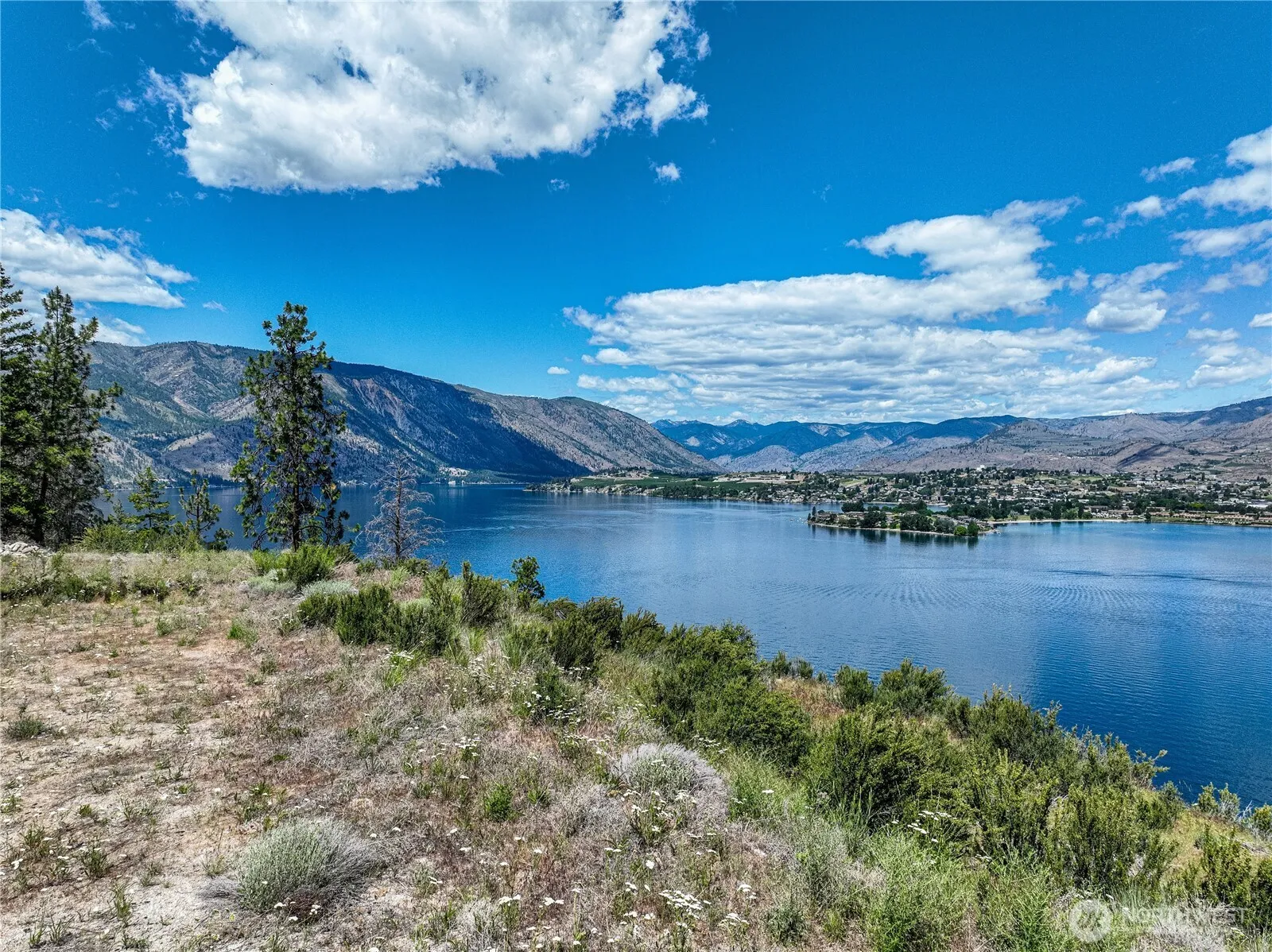 Ideal private south shore waterfront location near Sunnybank with over 1400 ft. of medium bank waterfront and 20 timbered acres with an incredible level building site boasting panoramic views overlooking the deep blue waters of Lake Chelan. This close in south shore location floats above the lake with a cleared terraced bench site with power and a private well for your dream home. Enjoy full summertime sun at your building site and your private dock with a buoy and 8000 lb. boat lift. No HOA’s and an end of the road location for complete solitude for your own piece of paradise.