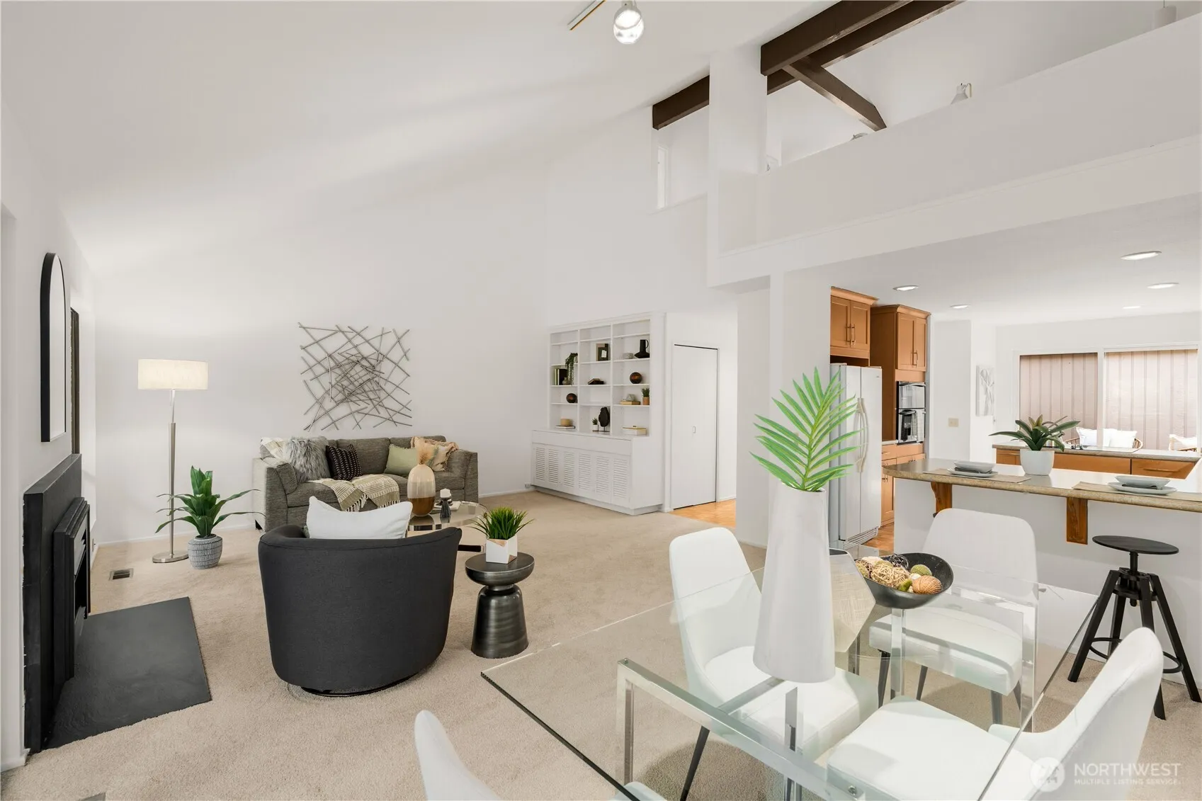 Tucked into a peaceful greenbelt with a year-round creek below, this refreshed townhome feels like a serene retreat and lives like a single-family home. Freshly painted with new carpet, you are welcomed by original hardwood parquet floors, a bright kitchen and sunny nook opening to a spacious private courtyard deck, perfect for morning coffee or evening gatherings. The vaulted living room has stylish wood beams, a modern gas fireplace insert and opens to a treetop deck. Two restful bedrooms, including primary suite, and a sunny loft with its own bath offer flexible space for work or other endeavors and great guest space. A spacious separate 2 car garage and tons of closet space round out the livability of this home.