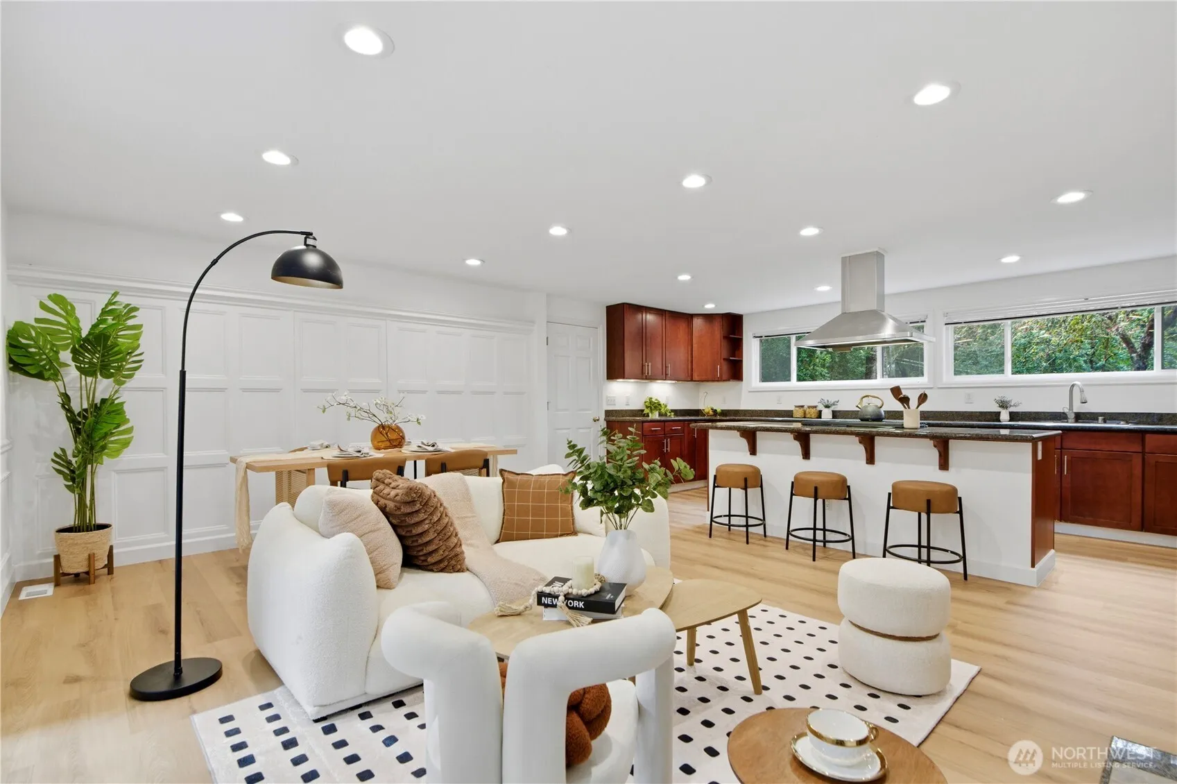 Stunningly updated NW contemporary home on a large corner lot in the heart of Bellevue’s highly sought-after Enatai neighborhood. Thoughtfully updated throughout with a newer roof, new flooring, fresh interior and exterior paint, and modern lighting, this home feels bright and inviting.The main level features an open-concept kitchen and living area, 3 bedrooms, and a versatile office or family room. The updated kitchen and contemporary bathrooms offer a clean, modern feel. The lower level includes a private-entry suite that can also serve as a spacious primary bedroom, along with a cozy family room, laundry, and storage. Enjoy a reimagined deck overlooking a spacious, level backyard with a sport court, newly reseeded lawn, and thoughtful landscaping. Conveniently located just minutes to Downtown Bellevue, with easy access to I-405 and I-90, and within the top-rated Bellevue School District.