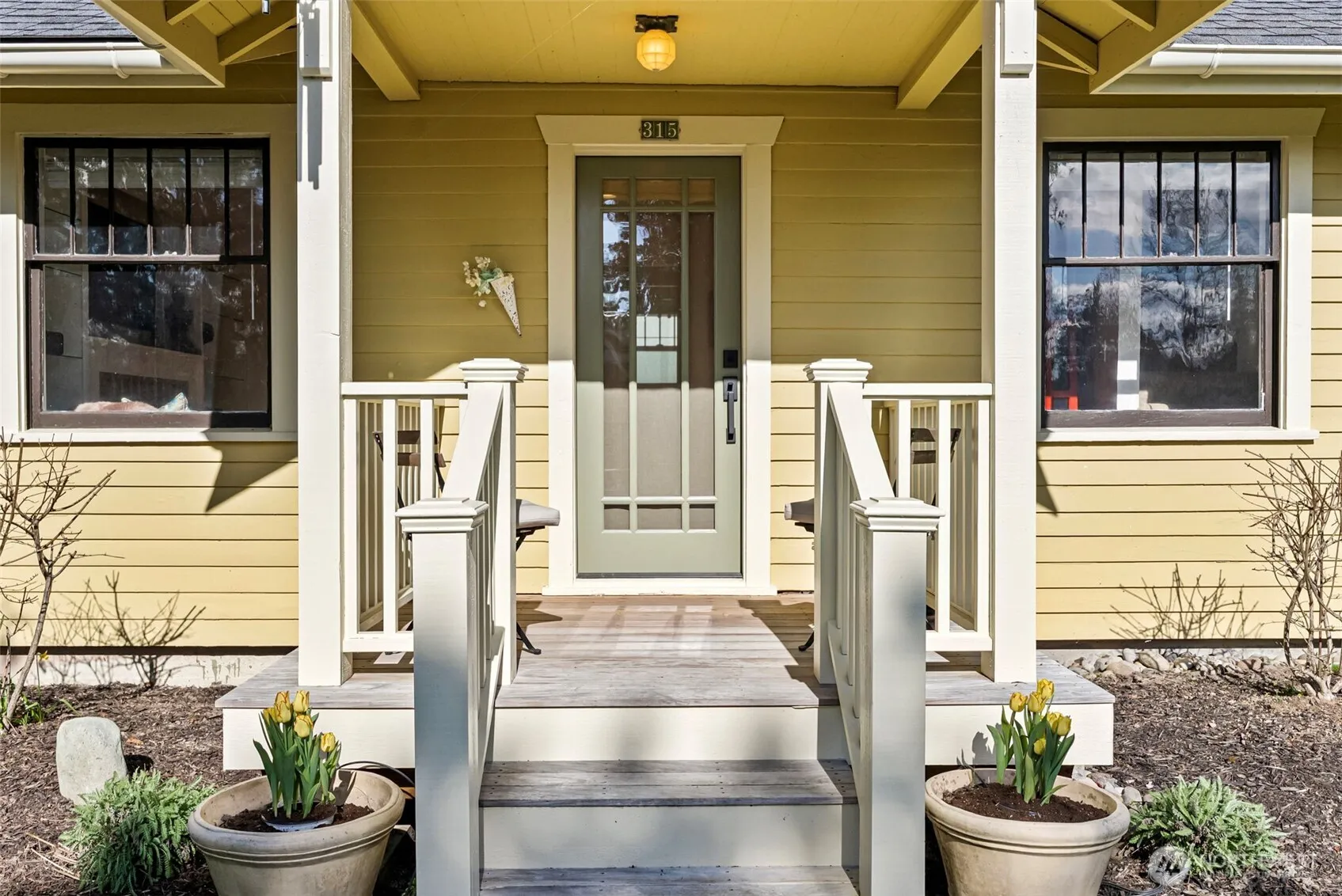 Vintage 1932 cottage bungalow is a tiny treasure, yet big on charm, inside and out. Meticulously restored in historic downtown Steilacoom, this home offers timeless design with modern systems, blending the best of both eras. Step inside to a cozy living room with gas fireplace, built-in glass shelving, & refurbished original Douglas fir flooring. The main level includes a primary bedroom & fully remodeled bathroom with tile flooring, updated fixtures, & glass shower. A chef’s delight, the kitchen is a standout, featuring high-end GE Cafe’ appliances, quartz countertops, custom cabinetry with vintage hardware, Moroccan tile backsplash, & Marmoleum flooring. Enjoy meals in the quaint breakfast nook with old-school chandelier & natural light entering through new Andersen windows. A Dutch door, open fir shelving, & under-cabinet lighting enhance this lovely gathering space. Conveniently located on the main level & tucked behind a custom barn door is a GE washer/dryer combo. Upstairs, two built-in beds with drawers & charging stations, new carpet, and new lighting has been thoughtfully planned. Views of the Sound & Olympic mountains are enjoyed from the second level. Every major system is new: HVAC heating/cooling, a tankless gas HW heater, plumbing, electrical panel & wiring, sewer & water lines, plus upgraded drainage system with sump pump. New roof & refreshed yard, too! This cutie is move-in ready! Enjoy true small-town living in one of Washington’s most charming communities!