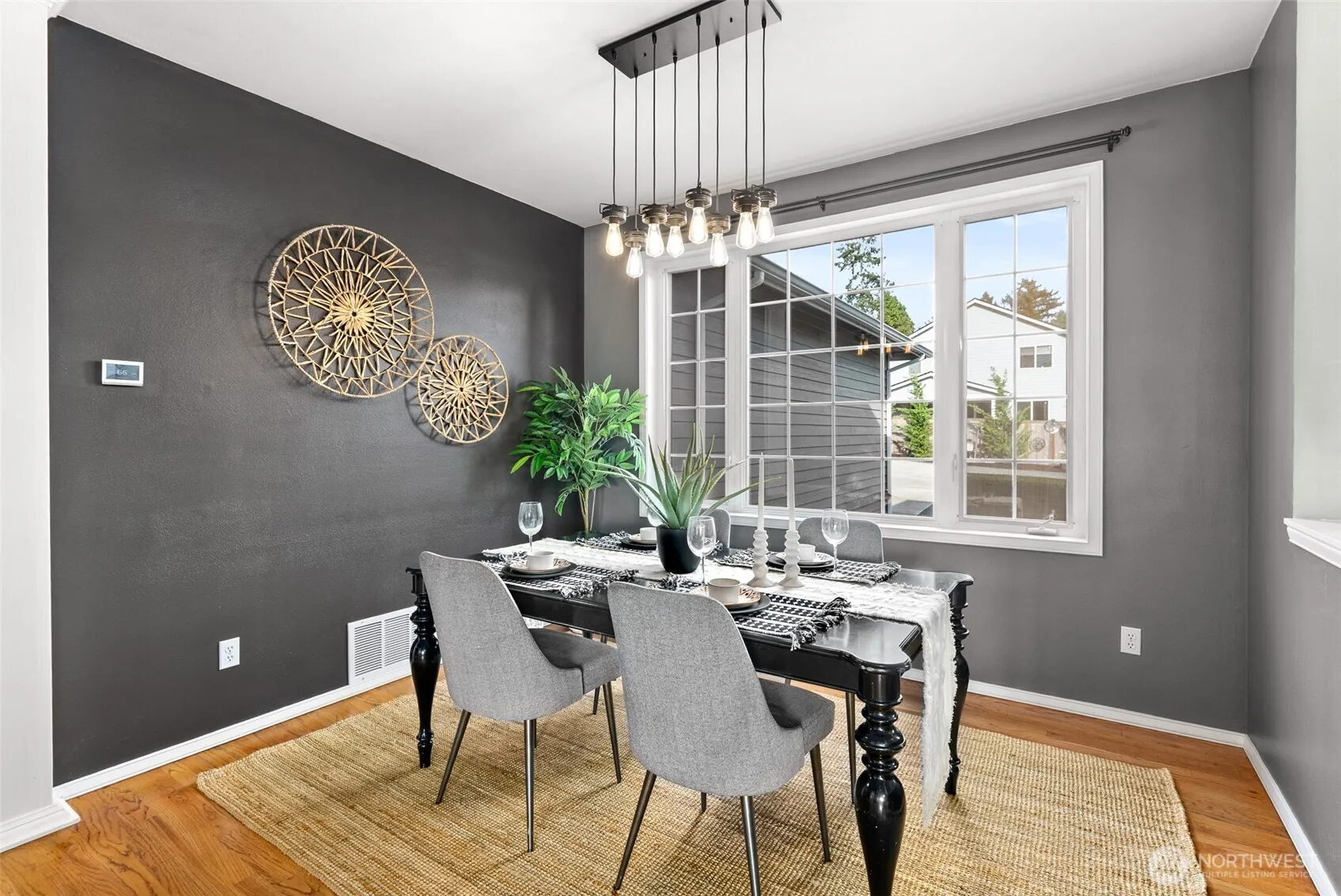 Nestled on the north side of Lake Stevens and just minutes from lakeside beaches and parks, this thoughtfully updated rambler offers single-level living at its finest. Set back on a private drive, the home welcomes you in with a cozy living room bathed in natural light from large windows. The kitchen is a chef’s dream, featuring prep space, stainless steel appliances, a large center island, a built-in dining nook and coffee bar, plus a nearby walk-in pantry. Adjacent, the dining room creates a perfect gathering space, while a secondary living area with a fireplace, built-in storage, and direct backyard access offers a comfortable retreat. Take your living space outside year-round to the fully fenced backyard and the large covered patio. The primary suite is a serene escape, with oversized windows, private backyard access, a spacious walk-in closet with custom storage, and a five-piece ensuite. Two additional bedrooms share a Jack-and-Jill bathroom and feature generous closet space, and a third bedroom with a built-in desk is ideal for a home office or creative space. A large laundry room with garage access, and a centrally located hall bathroom complete the home and make everyday routines effortless. You will appreciate the ample parking plus space for an RV, boat, or trailer.