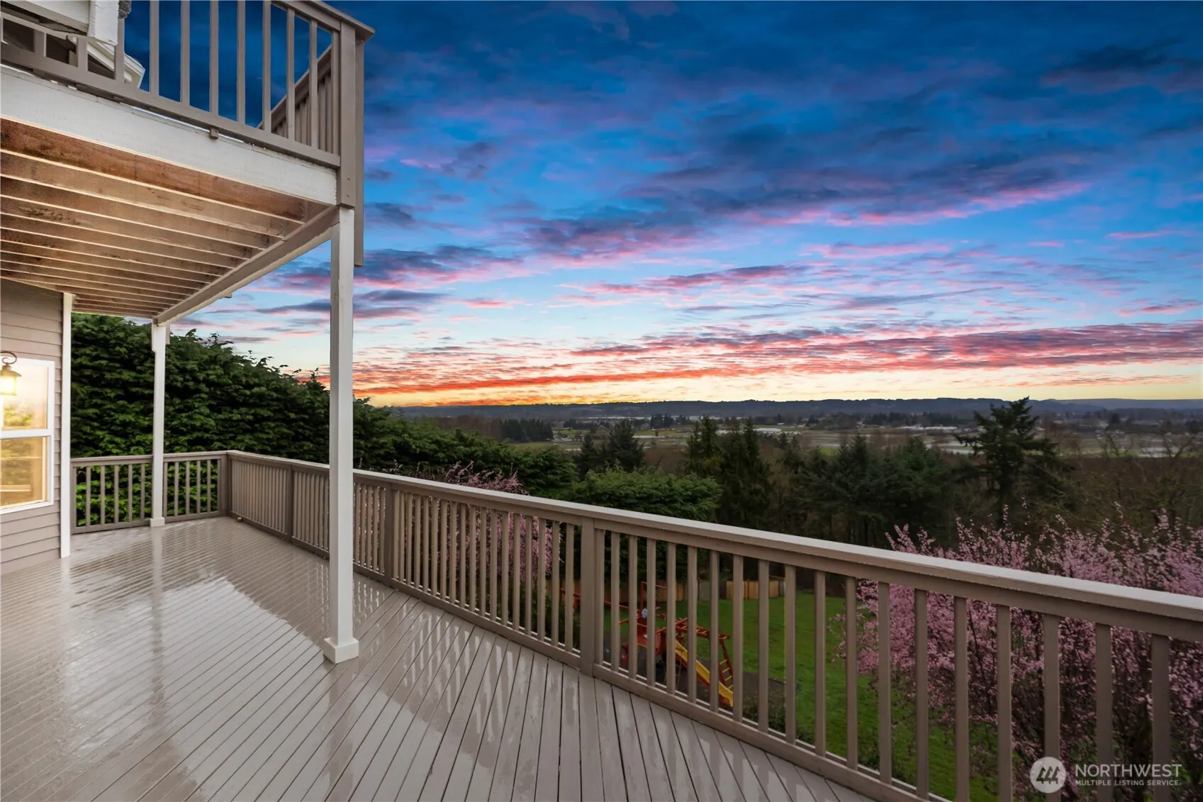 Perched above the breathtaking Puyallup Valley, with commanding views of the rolling valley & foothills, this exceptional 4,023 sq ft estate offers a rare blend of luxury, privacy, & natural beauty. The main level showcases a stunning, newly remodeled kitchen that opens seamlessly to the living room, where a cozy gas fireplace & expansive windows frame sweeping panoramic views. The kitchen nook provides direct access to the deck, creating a seamless indoor-outdoor connection ideal for entertaining. Formal living & dining rooms offer refined gathering spaces, while French doors open to a den/office. An updated powder bath & destination laundry room complete the main level. Upstairs, the expansive primary suite is a true retreat—featuring awe-inspiring views, a private balcony, & a serene, spa-like ambiance. 2 additional bedrooms & a full bath complete the upper level. The daylight basement is designed for versatility & entertainment, offering a generous flex space ideal for a fitness studio, or home theater, along with a wet bar, spacious family room, 4th bedroom, & full bath—perfect for guests or multi-generational living. Set on 1.695 acres, the grounds are equally impressive. A custom front-yard waterfall creates a striking first impression, while the terraced backyard—complete with a sprinkler system—offers beautifully maintained outdoor spaces designed for play, relaxation, & effortless entertaining. Just minutes from town, this is elevated Northwest living at its finest.