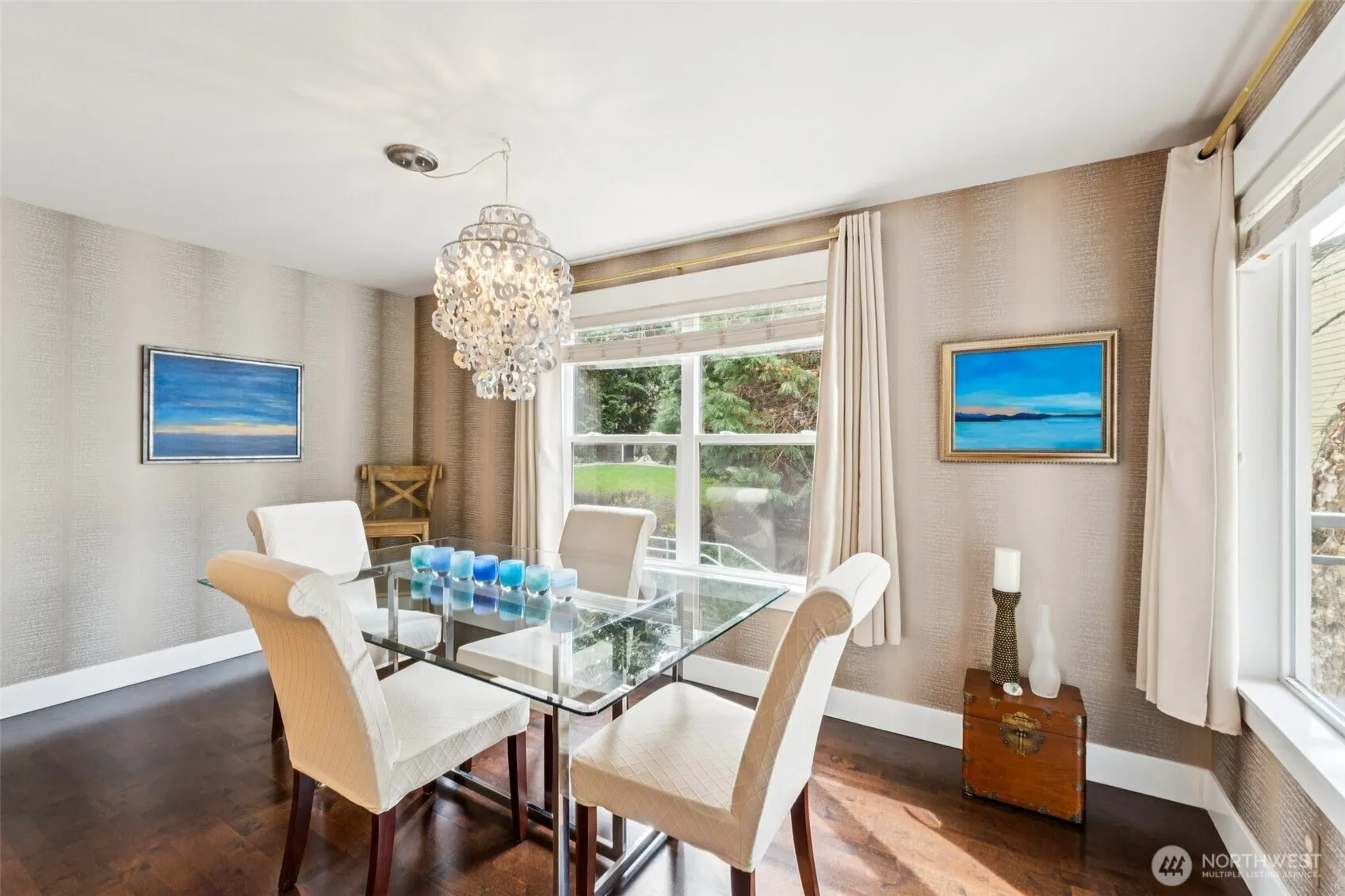 Welcome to this turnkey home, privately situated in the highly sought-after Sequoyah community of Edmonds. Exquisite details shine in this spacious 2 bedroom corner unit, like the rich hardwood floors, sleek electric fireplace, and custom window treatments. The oversized balcony has one of the most serene views in the area, overlooking sculpted landscaping and majestic sequoias. Large windows allow natural light to dance through the large dining area and kitchen, past the laundry area to the comfortable bedrooms. The primary suite includes a luxurious walk-in closet. All of your storage needs will be met in the numerous additional closets and external storage room. This truly special community includes a popular club house and pool, wonderful for large gatherings. Moments away from downtown Edmonds, Westgate shopping and convenient to I-5. Come see why this is where everyone wants to live!