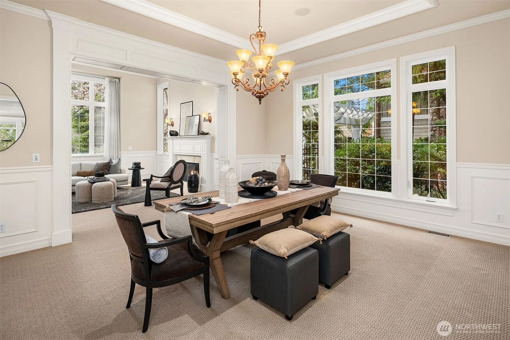 Luxury living in Aldarra Estates. Experience exceptional John Buchan craftsmanship in this 4-bedroom, 4-bath home featuring soaring ceilings, and expansive, sun-filled interiors. Elegant formal living and dining rooms set the tone, while the gourmet kitchen boasts Thermador stainless appliances, prep sink and custom cabinetry. The adjoining family room and breakfast nook overlook the magnificent, private backyard oasis – complete with an outdoor kitchen gazebo, expansive deck, koi pond, and fully-fenced grounds. The seamless and dramatic “infinity lawn” blends into the surrounding trees, supporting spectacular mountain views on clear days. Upstairs the grand primary suite with it’s own fireplace, luxurious 5-piece bath, and oversized California Closets offer exceptional storage. A main-level office/bedroom with a full bath provides the perfect set up for guests. Additional bedrooms are generously sized with adjoining baths and large walk-in closets. Central A/C – Hard-wired generator, and a spacious 3-car garage. Elegant living at it’s finest!