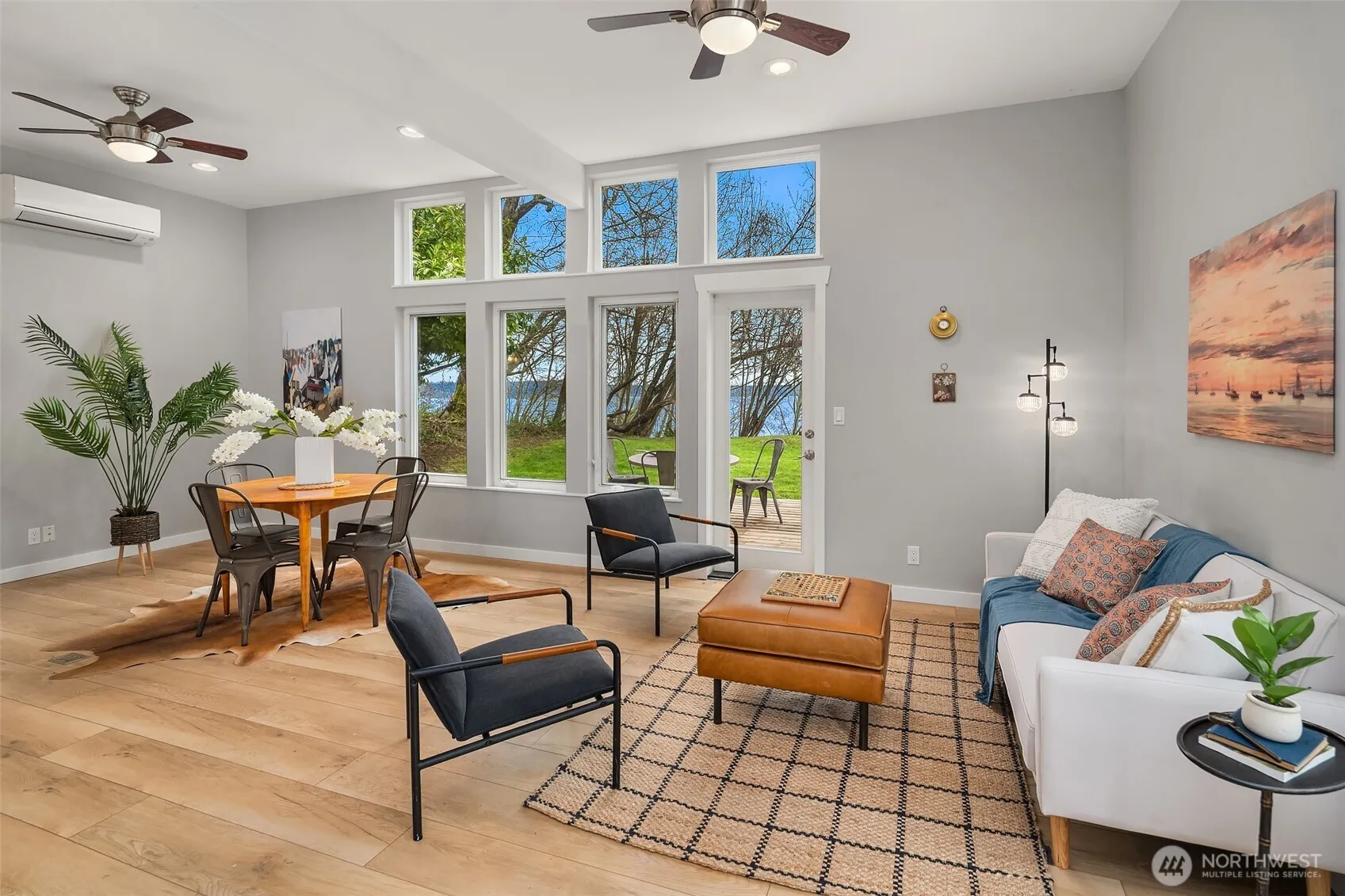 Perched on the east side of Vashon Island with a sweeping southeastern exposure, this modern, open-floor-plan home is a study in intentional living—where every design choice frames the breathtaking view of Puget Sound and Mount Rainier. The clean lines of the layout, high ceilings, and an airy second-floor bedroom offer an abundance of natural light and a seamless connection to the outdoors. Soaring windows orient the entire home toward the water and mountain, making the view the centerpiece of both floors and the half wrap around deck. Whether you’re sipping coffee as the sun rises over Rainier or unwinding to the shimmer of the Sound at dusk, this is a place that invites you to slow down and soak it in. A mini split provides year-round comfort with both heating and air conditioning. Set on .8 of an acre, you’re far enough from the hustle to feel like you’ve escaped, yet just 1.5 miles from Vashon town and less than 10 minutes from the ferry. This turn-key home is the perfect part-time getaway or full-time retreat for those who want a front-row seat to the beauty of the Pacific Northwest.