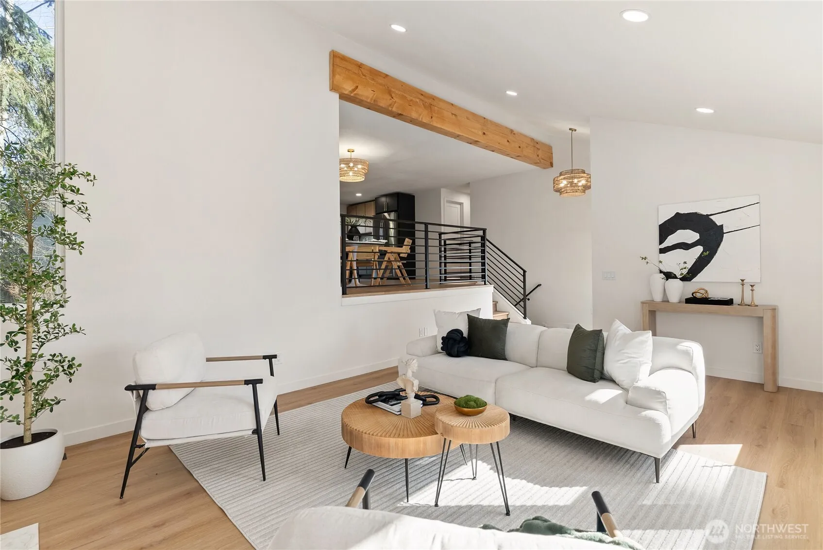 Tucked in a quiet cul-de-sac in highly desirable Picnic Point, this grand custom home blends timeless Mid-Century Modern style with elevated modern finishes. From the striking double-door entry to soaring vaulted ceilings and a stunning open living space, you’ll feel the difference instantly. The chef’s kitchen shines with quartz counters, slim shaker cabinetry, SS appliances, wine fridge & custom LED under-cabinet lighting – carried into the baths for a sleek, modern glow. LVP flooring & fresh interior/exterior paint throughout. Upstairs offers 3 bedrooms, including a spacious primary with a breathtaking en-suite featuring designer tile & custom vanities. Downstairs: large flex room/4th bedroom, half bath & a beautifully updated oversized laundry. Oversized garage w/ Epoxy coating, RV parking, PLUS a detached SHOP/GARAGE for all your toys/projects. Fresh landscaping, room to entertain, minutes to Picnic Point Park, Meadowdale Beach, dining & more. Mukilteo SD.