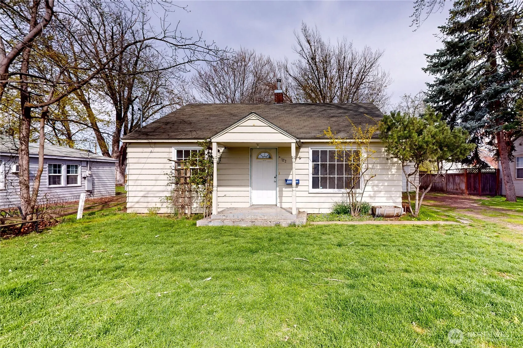 Two-bedroom, one-bath cottage on oversized lot served by Blalock District 14 water in the College Place school district. Two oversized French pane windows let in lots of natural light into this cottage on a quiet street. Original wood floors in the living room and bedrooms. Electric service panel installed in 2018. Trane XE central AC, Trane XR 80 gas central furnace, and Smith gas water heater in the basement were also installed in 2018 by College Place Heating and Air Conditioning.