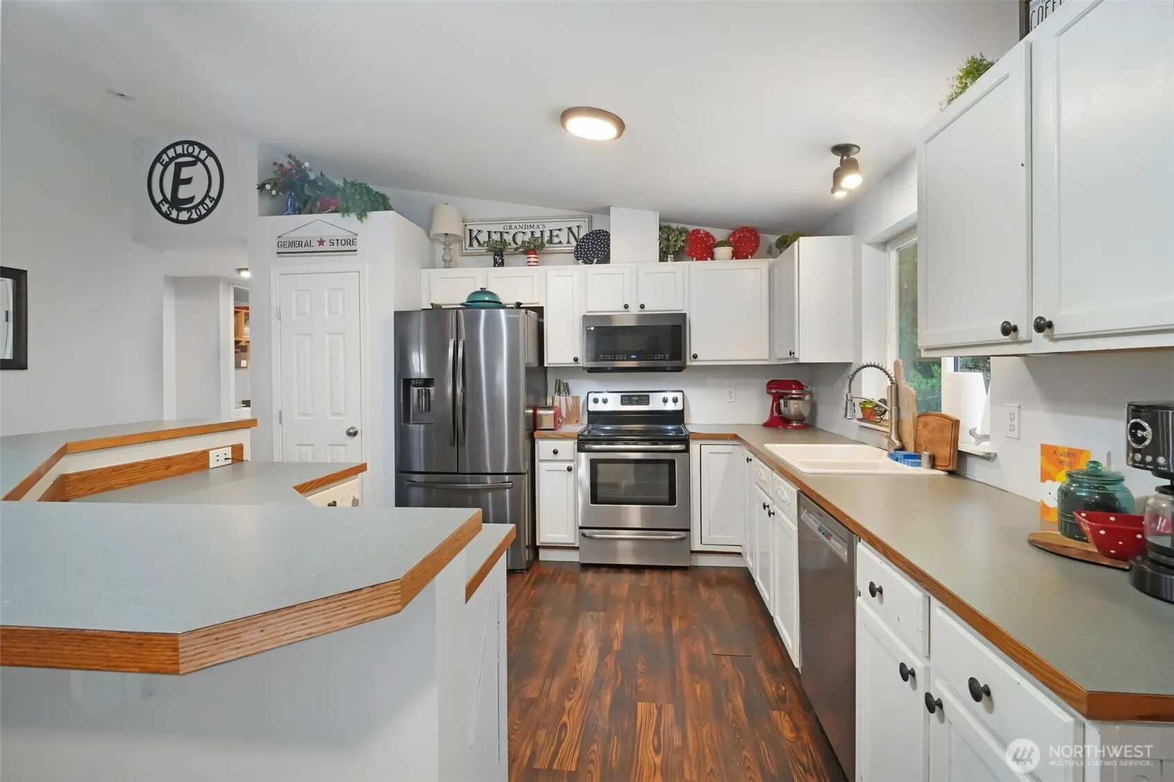 Discover the perfect blend of privacy and convenience on this beautiful property just shy of 2 acres, mature bushes, fruit trees, outdoor buildings ready for those goats, chicken or small animal, gate at entry, paved walkway from house to woodshed with wood ready for those chilly nights. Nestled at the end of a quiet dead-end road, this setting offers open-concept living with natural light, three spacious bedrooms, cozy wood stove for the chilly nights, large kitchen & living area, and both a patio and deck ideal for relaxing or entertaining. The partially fenced yard, massive shop 62×48 with an RV door this is a rare find for hobbyists, RV owners, or small business needs.