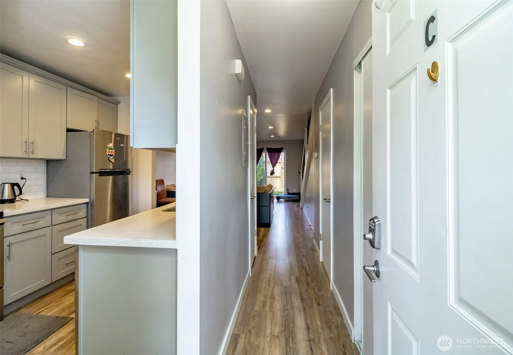 Beautifully updated 2-story Condo in a serene, well-maintained community! Features shaker cabinets, quartz counters, SS appliances, and laminate flooring throughout the main level. The functional floorplan includes two spacious bedrooms, wrought iron stair railings, and a private fenced patio backing to a park. Community recently replaced siding and roofs. Two assigned parking spaces plus guest parking. HOA dues include water, sewer, common area maintenance and garbage. No rental cap and no special assessments—a great opportunity for homeowners or investors! Conveniently located near shopping, dining, and highways.