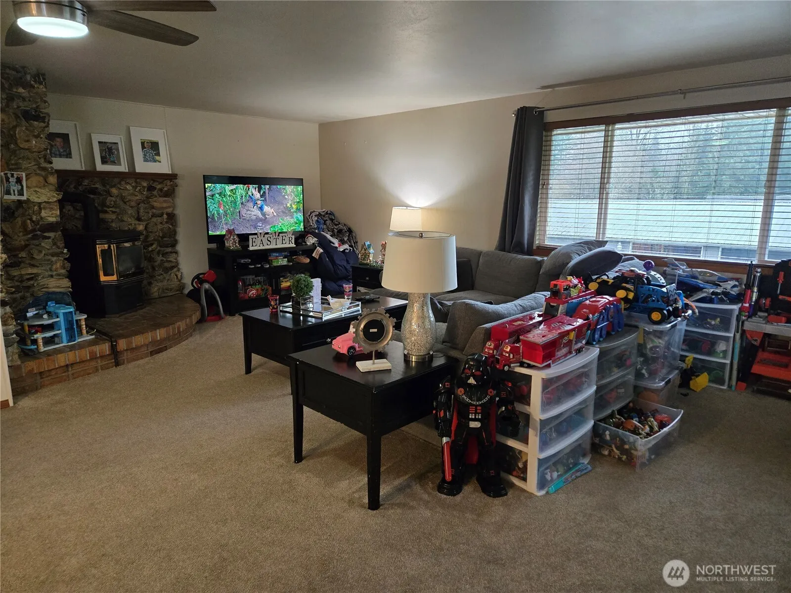 Large daylight rambler with with 3 bedrooms and 2 baths. Home is on a large 1/2 acre lot with a workshop area. Large living room with a propane fireplace and family room with wood fireplace inset. Living space both upstairs and downstairs. Oversized laundry room with washer and dryer hook ups. Large deck off master that over looks the property. Property has beautiful territorial views, very quiet & private. Covered carport area. Close to shopping and amenities.