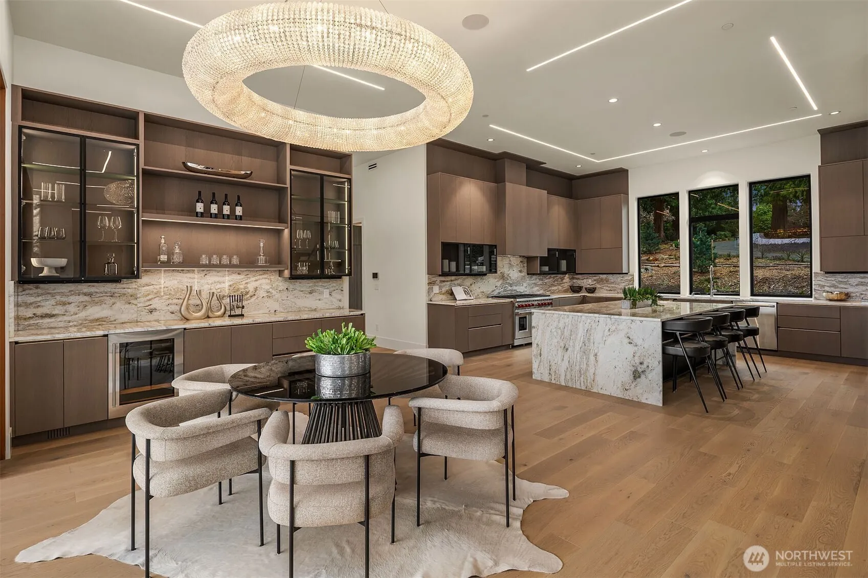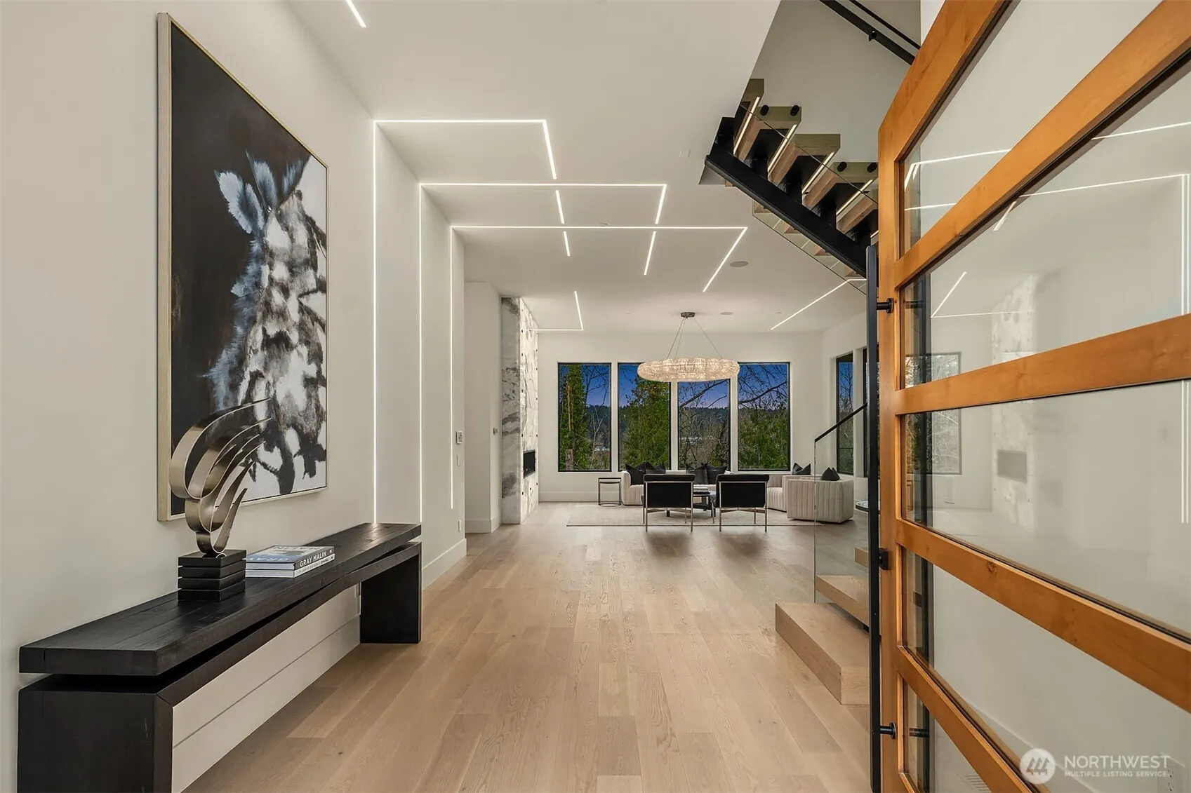 Set in the coveted enclave of Yarrow Point, just moments from the greater Seattle area, this exceptional custom residence with lake views offers a living experience more akin to a private five-star retreat. Thoughtfully designed with striking architecture and elevated finishes, it blends global luxury with the natural beauty of the Pacific Northwest. Western exposure paired with breathtaking eastern sunrises fills the home with ever-changing light. A natural stone entry opens to soaring ceilings and wide plank white oak floors, anchored by a translucent backlit marble fireplace. Architectural linear lighting and crystal chandeliers create a refined yet inviting atmosphere. A 14-foot NanaWall connects seamlessly to a 500-square-foot covered deck with a wind-rated automatic screen, delivering effortless indoor-outdoor living. The kitchen features Wolf and Thermador appliances, custom cabinetry with integrated lighting. A temperature-controlled wine room and expansive theatre elevate both entertaining and everyday living. Upstairs, the primary suite offers Italian porcelain slab finishes, a backlit marble niche, spa-inspired smart showers, and a private deck. Fully networked and powered by a Control4 smart system, this home offers effortless control, privacy, and prestige. Outdoors, fireplaces, fire pits, and a one-of-a-kind breezeway beneath the home complete this rare offering. This is not just a home—it’s a statement, come see for yourself!