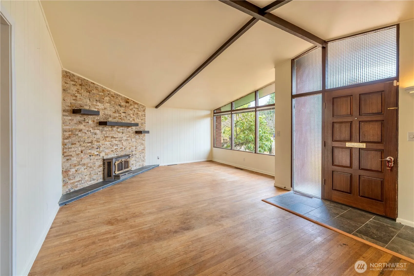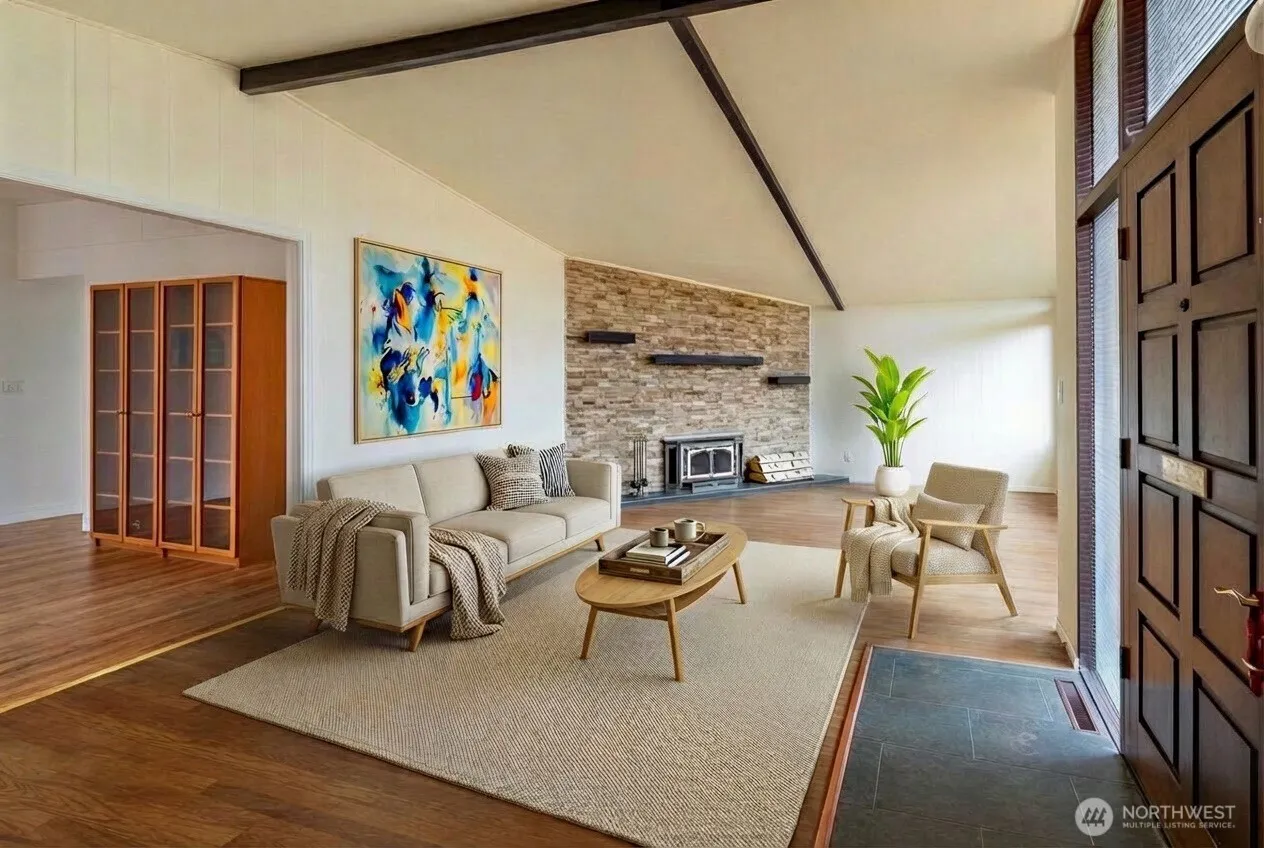 Light, bright, & thoughtfully updated—this stylish mid-century home offers comfortable one-level living with large windows that fill each room with natural light. The recently remodeled kitchen features solid surface countertops, stainless appliances, & a glass cooktop, creating a clean & modern space for everyday use. A ducted heat pump provides efficient forced-air heat & air conditioning, while the fireplace & wood stove add warmth & ambiance. Recent exterior updates include a newer roof (2018) & fresh paint, complemented by low-maintenance landscaping. Fully fenced back yard & one-car garage + storage. Conveniently located near the hospital & just minutes from coffee, shopping, & everyday amenities. The property also includes a fully permitted detached studio unit with kitchen, ¾ bath, & small one-car garage, currently leased to a tenant, providing built-in rental income for the next owner.