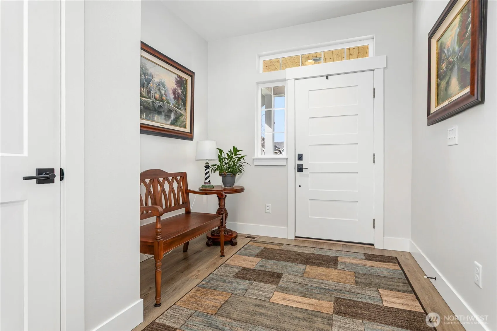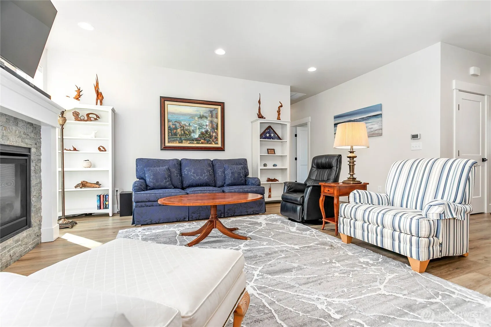 Effortless single-level living with a modern edge! This open-concept home impresses with vaulted ceilings, a cozy gas fireplace, and a layout that flows seamlessly for everyday living and entertaining. The chef’s kitchen is a showstopper—quartz counters, tile backsplash, rich luxury vinyl plank flooring, undercabinet lighting, pull-out drawers in the cabinets, and a walk-in pantry ready for it all. The primary suite is a true retreat, featuring a very spacious bathroom and a large walk-in closet. Tucked against a peaceful greenbelt, you’ll love the privacy and abundant natural light. Step out to the large covered patio—perfect for year-round relaxing or hosting—while your backyard features fruit trees and in-ground irrigation for easy care and a touch of sweetness! Stay comfortable with central A/C, and enjoy upgrades like natural gas appliances and a tankless hot water system. This home is clean, efficient, and move-in ready—the total package!