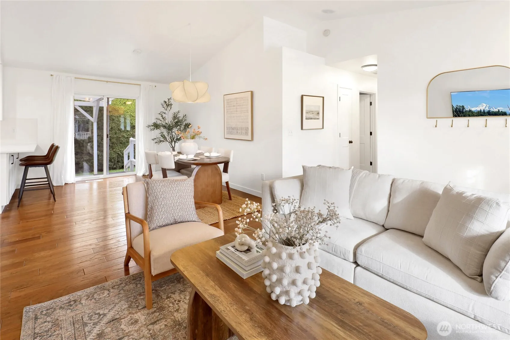 Turn-key one-level living in a fantastic Lynden location! Vaulted ceilings and gorgeous engineered hardwood floors create a bright, open feel, while the fully remodeled 2022 kitchen steals the show with quartz counters, custom drawer cabinets, new appliances, convection oven with air fryer, and sleek thin-profile microwave. The primary bedroom features its own attached bathroom and a large walk-in closet. Laundry room upgrade with cabinets and sink adds extra convenience. Major updates already done—including a brand new roof, EV charger, new carpet throughout, hot water recirc pump, and an efficient heat pump for low bills and comfortable central A/C. Step outside to enjoy the covered pergola patio area and just enough yard space for the green-thumb enthusiast, complete with a greenhouse! All just a stone’s throw from Bender Fields recreational park, Bender Plaza (restaurants, Woods coffee, Froyo, etc.) and Lynden’s scenic trail system connecting parks and town. The community features a designated RV parking spot for a minimal fee. Perfect for first-time buyers or investors looking for a move-in ready home!