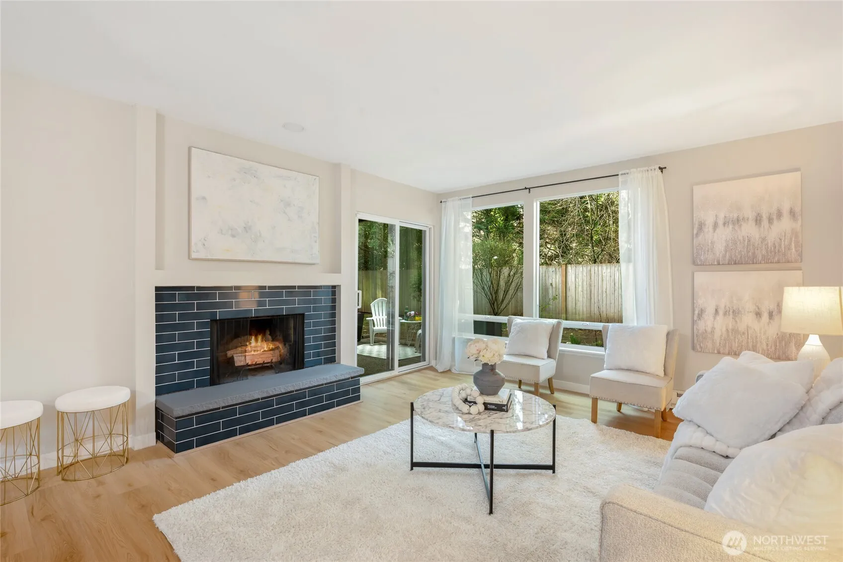 Not Your Average Beige Box! Discover a thoughtfully upgraded home with color, style, and character. Nestled in the heart of Lake Forest Park, this ground-level unit offers just under 1000 sf modern sophistication surrounded by a lush greenery. The heart of the home is the open dining space and living room anchored by a modern tile-surround fireplace. Large windows and a sliding glass door lead to your private covered patio—the perfect spot for morning coffee while enjoying the quiet lifestyle this community provides. Don’t miss the renovated kitchen, featuring new stainless steel appliances, upgraded cabinetry, and premium soft close hardware. The primary suite features a striking custom slatted accent wall and a handsomely updated en-suite 3/4 bathroom. Completing the home is a secondary bedroom and a fully renovated hall bathroom. With new windows as of 2025, flooring and lighting throughout, every inch of this home feels fresh and intentional. This peaceful community is just minutes from the Lake Forest Park Town Center, Ballinger Thriftway, movie theater, golf courses, lake access, parks, and more. Extra storage can be found off the outdoor patio and as well as inside the carport in front of your designated spot. Plenty of guest parking, too! It’s a commuter’s dream with quick access to major routes, only 20 min to Seattle & 20-25 to Redmond, Bellevue, and the Eastside. With no rental cap and in the Shoreline School District, this home is a great starter or investment!