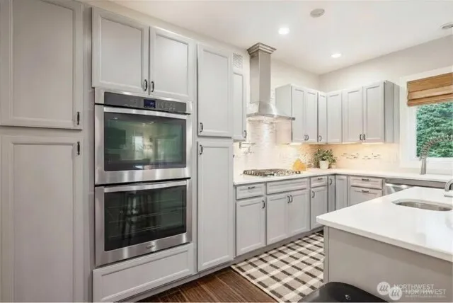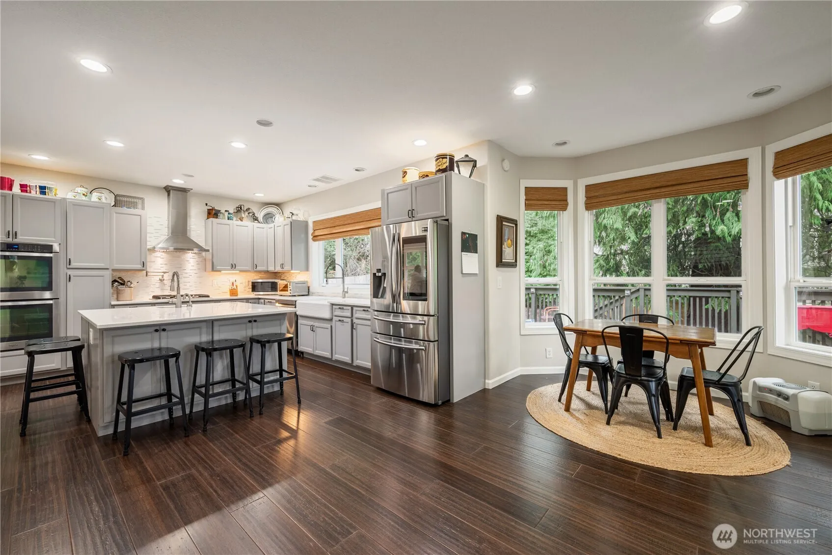 Welcome home to this custom “Street of Dreams” residence in a quiet cul-de-sac in highly sought-after Columbia Heights! Offering over 3,500 sq ft, this home features 4 bedrooms, an office, 2 living areas, & a versatile bonus room that could serve as a 5th bedroom. The open-concept main living space connects seamlessly to a chef’s kitchen with a large quartz island w/ prep sink & instant hot water, double ovens, gas cooktop with pot filler, farmhouse sink, dishwasher, garbage disposal, & abundant soft-close cabinetry. Expansive windows & a 4-panel sliding glass door fill the home with natural light & open to the backyard. Enjoy a bay window breakfast nook plus a formal dining room adjacent to the sunken 2nd living room with cathedral ceilings & fireplace. The main floor also includes a private office, additional flex living space (or convert to 5th bedroom) & a laundry room with folding storage. Upstairs, the primary suite with French door to a loft space, offers a spa-like bath with free-standing tub, tiled walk-in shower, dual vanities, and walk-in closet. 3 additional bedrooms & full bath complete the upper level. Step outside to an expansive full-length deck with covered gazebo, overlooking a fenced backyard, perfect for entertaining. Oversized 3-car garage w/ extra workspace. Home is equipped with surround sound & plumbed for central vacuum system. Recent 2025 updates include interior paint, carpet, lighting, hardware & newer roof. Move-in ready and truly one-of-a-kind!