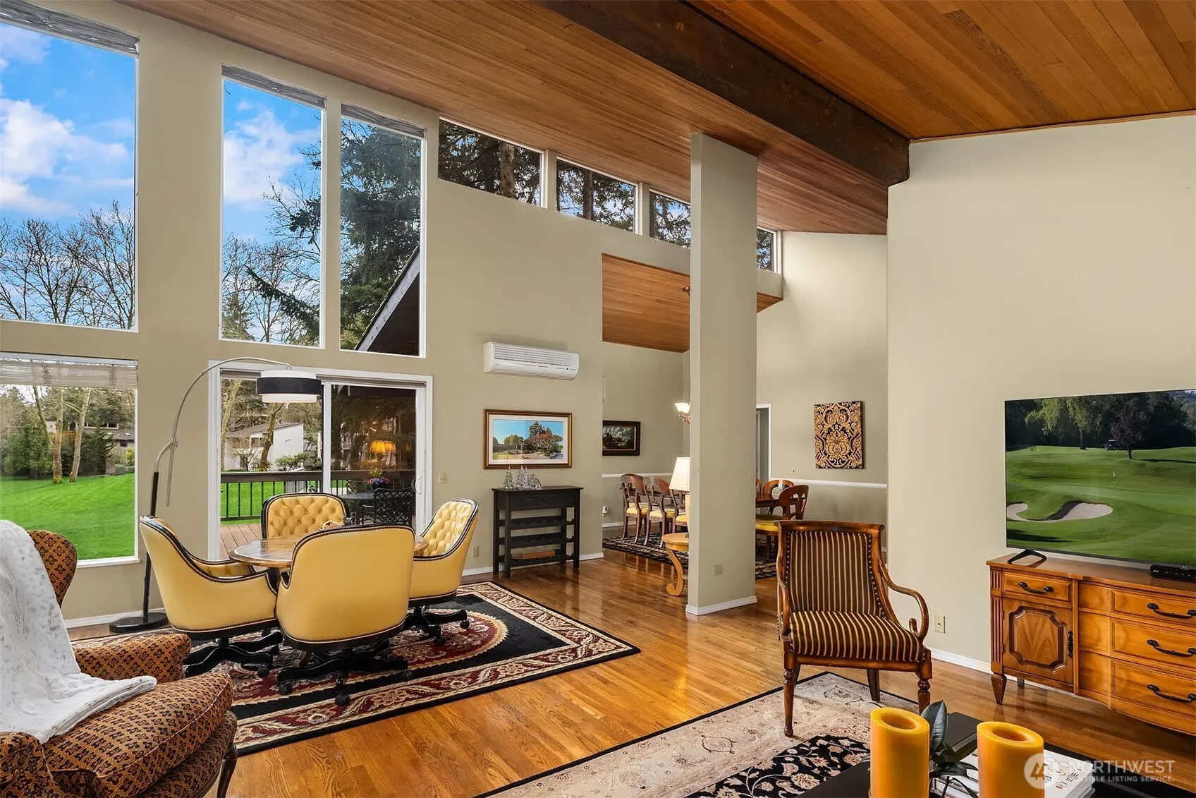 The lock-and-leave lifestyle rarely arrives this beautifully appointed — or this well-placed. Positioned on the most private, sun-drenched lot in Medina Park Place, this exceptional home makes an immediate impression with soaring vaulted ceilings, warm cedar detailing, and walls of glass that frame sweeping Overlake golf course views. This home offers all the benefits of single family living with the ease of a townhome lifestyle. We know you will love the beautiful natural light and vistas throughout the day. The main living areas all enjoy incredible golf course views and flow seamlessly to an oversized deck, dissolving the boundary between inside and out. All three bedrooms share a single floor — a rare and practical luxury — including a primary suite with ensuite bath and three generous closets. A second, light filled bedroom with its own fireplace doubles beautifully as a flex space. Lovingly maintained and move-in ready, the home is a true jewel. Walk to Medina Park, the beach, top-rated schools, Overlake Golf & Country Club, and Kitchen & Market. HOA-managed landscaping keeps the grounds pristine year-round — effortlessly. We think this is the most private, sunny home in the Medina Park Place and think you will too! Medina Park Place is one of the Eastside’s best-kept secrets, in one of its most treasured communities.