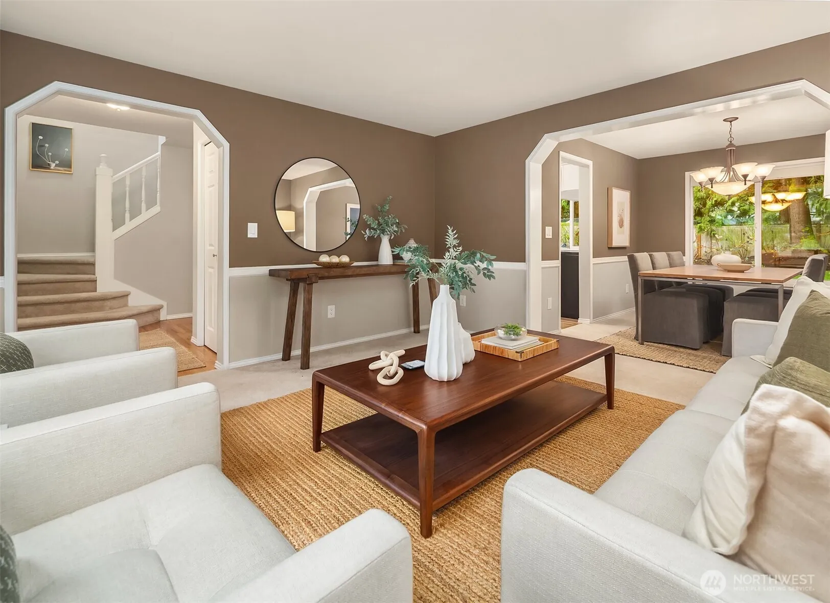 This amazing resale in Summer Ridge — one of Sammamish’s most beloved and established neighborhoods — is nestled on a quiet cul-de-sac with a private path to Summer Ridge Park and walking distance to highly rated McAuliffe Elementary. An inviting covered porch welcomes you into a rare floor plan offering 4 bedrooms plus a bonus room, thoughtfully designed for many different uses. Hardwood floors, chair rail millwork in the living and dining rooms, and bay windows in the formal living room and primary bedroom add warmth and timeless character throughout this lovingly maintained home.A sun-filled remodeled kitchen features quartz counters, newer appliances, and a pantry for added storage, opening to a cozy eat-in nook and spacious family room with vaulted ceilings and a wood burning fireplace with classic brick façade. The welcoming primary suite offers an updated bath, custom closet, and a beautiful bay window — perfect for enjoying the morning sunlight. Outside, the fully fenced private yard features a fire-pit area, hot tub hookup, and a large low-maintenance composite deck ideal for entertaining while soaking in the westerly sunsets. Mature landscaping provides privacy and curb appeal in every season. Major systems are updated and worry-free — including 2022 HVAC + AC, 50-year Presidential roof and wired for generator (included in sale) — giving buyers lasting confidence and peace of mind.