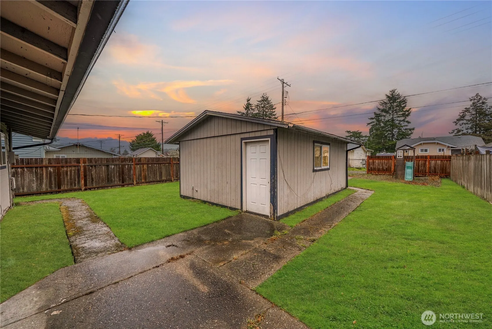 Offering $8,000 buyer credit! Appraised above value! Step into this thoughtfully updated single-level home offering 3 bedrooms and a spacious open concept layout that feels larger than its footprint. The fully fenced property includes a detached approx. 350 sq ft structure currently used as dry storage, with the ability to convert it back into a garage. Inside, you’ll find granite countertops, updated flooring, stainless steel appliances such as refrigerator, range/oven, microwave and dishwasher. Beautiful barn doors in the hallway add character while maximizing functionality for the laundry and linen spaces. The yard is fully fenced with lush green grass, room for parking, big toy play set and an additional storage shed. Comfortable, functional, and move in ready! Roof was replaced in 2022.