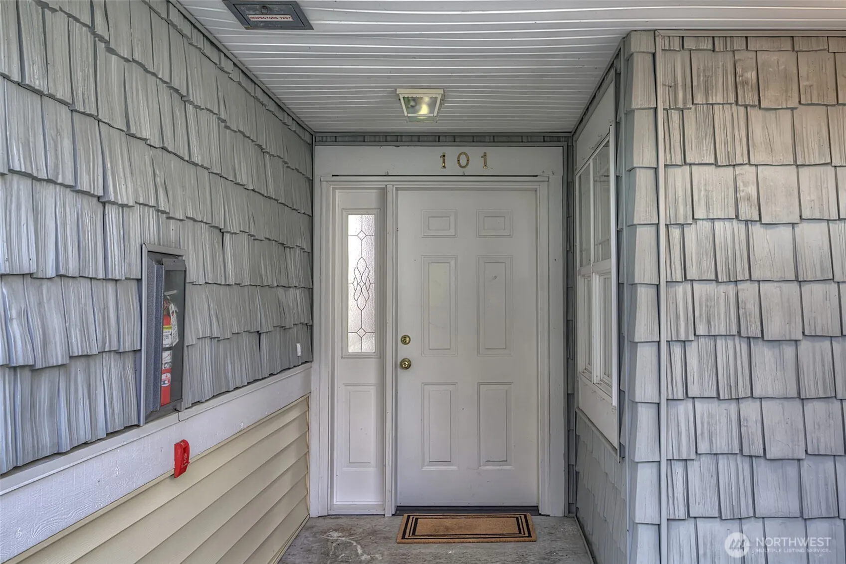 Welcome to your private and rare single level, no stair, end unit, condo in the coveted Canyon Ridge Community. Located at the end of the cul-de-sac and bordered by a green belt on two sides this dwelling provides abundant parking in your spacious attached 2 car garage. Additional 4 car parking on your driveway and more on the dead-end road. Open floor plan with large windows provides lots of natural light and beautiful views. This home features a large living room/dining room with a gas fireplace, and a large den/office. The kitchen with eating space has lots of cabinets, a pantry and utility room. Wake up to a soothing forest view from the primary bedroom with newly updated En Suite and walk in closet. Enjoy and entertain on your covered outdoor living space overlooking your private forest with walking trails. This great location gives you easy access to 405 and I-5. Additional storage in the garage and back deck. North Shore School district.