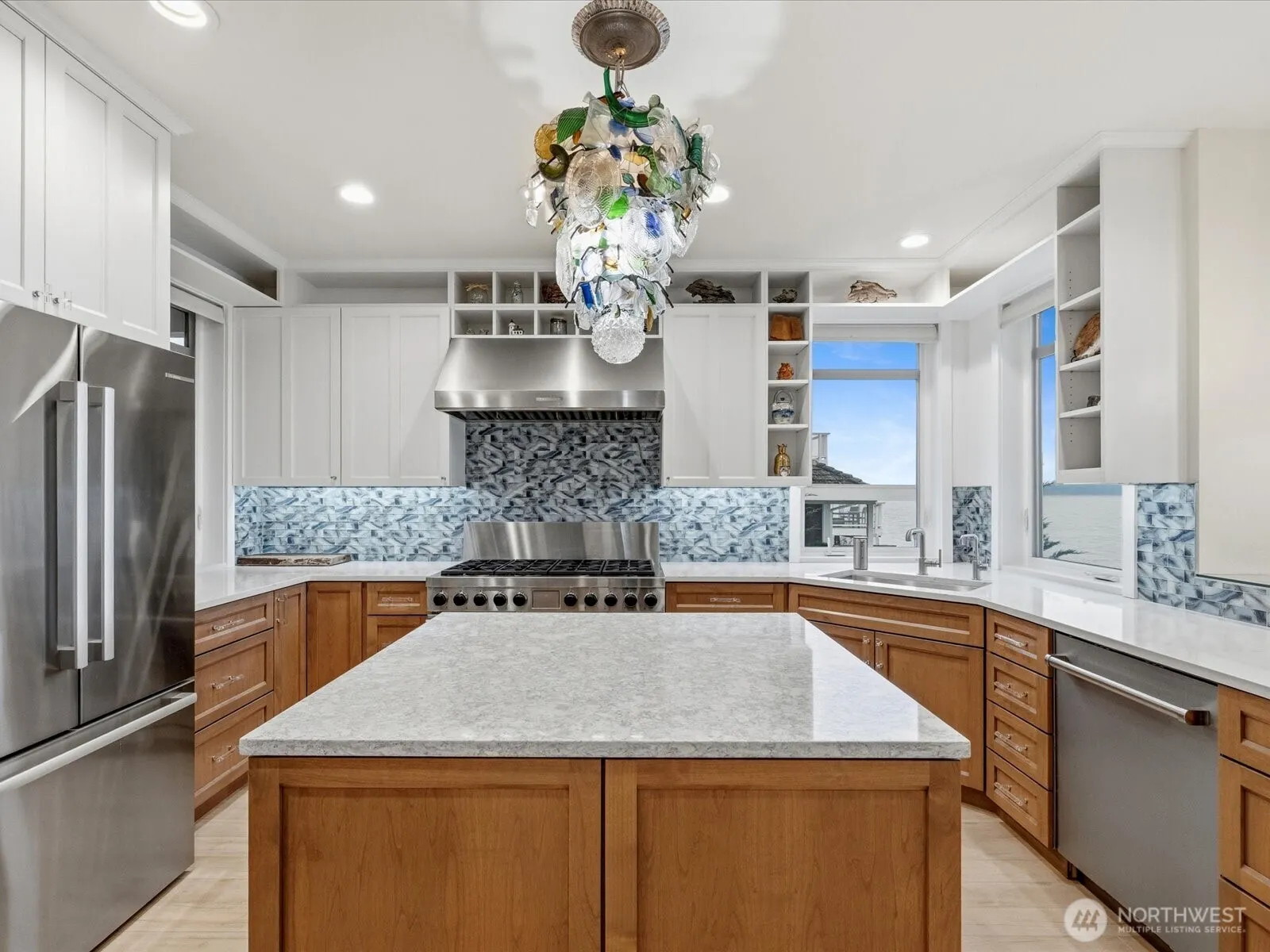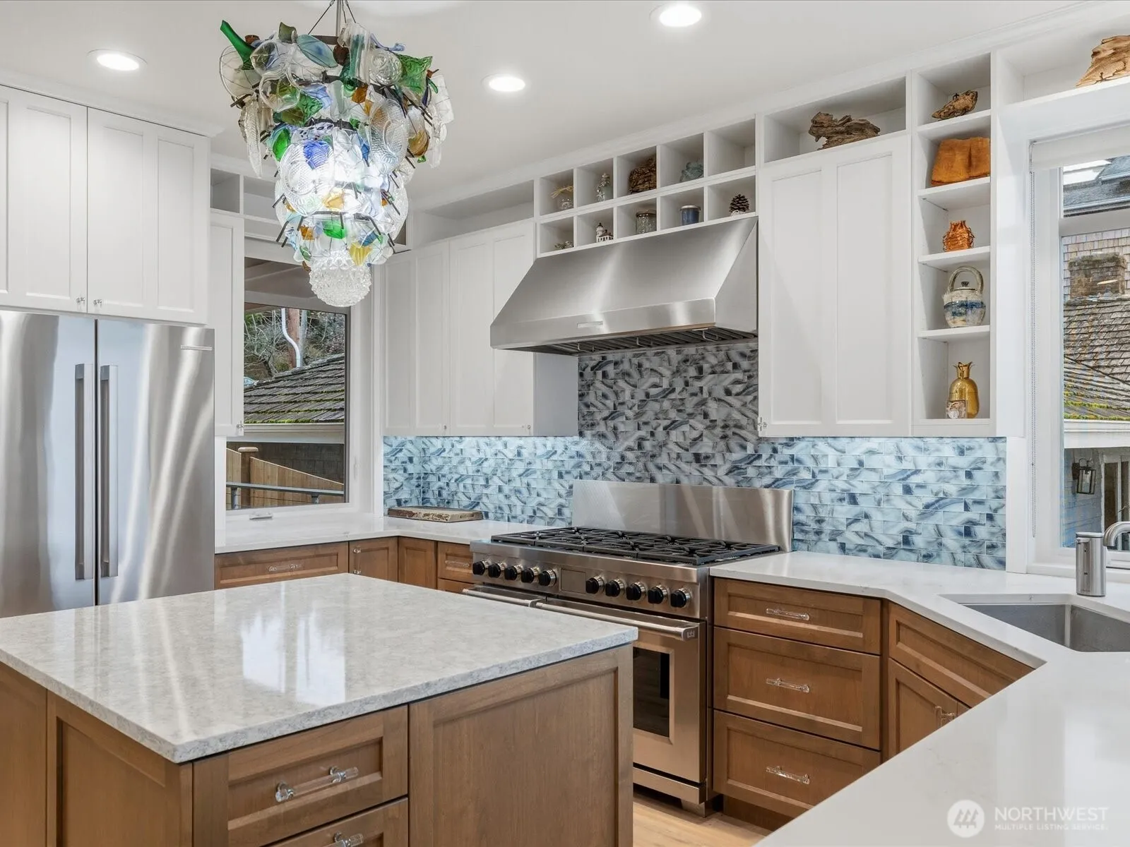 Nestled along the coveted Soundview corridor, this sound-side retreat was completely remodeled in 2023, with every detail thoughtfully chosen and curated. Designed to balance coastal relaxation with refined style, the home combines comfort, beauty, and modern sustainability. Fully built as a green home, it holds LEED certification, a 5-star energy rating, and a solar backup system—offering peace of mind and efficiency at every turn. Inside, enjoy light-filled living spaces, high-end finishes, custom millwork, designer tile, curated flooring, and a climate-controlled wine cellar. The kitchen is both stunning and functional, perfect for entertaining or everyday living. A detached garage with a stylish ADU above offers guest space, a home office, or income potential. Outdoors, custom decking and railings complement a brand-new bulkhead completed in 2026, while one of the home’s most memorable features—the Belvedere tower—provides panoramic water views, ideal for whale watching, sunsets, or quiet reflection. Turnkey, elegant, and designed with every detail in mind, this home is a rare opportunity to enjoy serene, sound-side living at its finest.