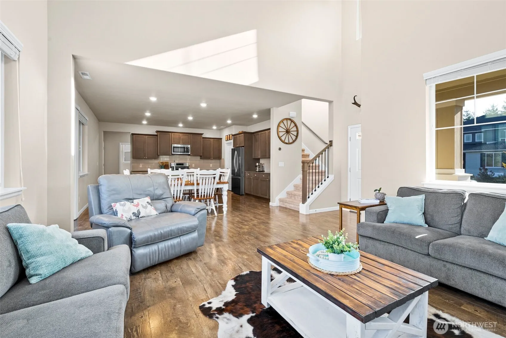 A Move-In Ready Tehaleh Gem! This stunning 4 bed/2.75 bath, 2,282 sqft home is loaded with upgrades- newer premium carpet, updated appliances, AC, in-ground sprinkler system, and a Foreverlawn turf backyard built for easy living. Soaring ceilings & a great room effortlessly flow into the beautiful chef’s kitchen with a walk-in pantry. The main floor guest suite/office is paired with a 3/4 bath! Upstairs is the loft, 2 secondary bedrooms, and a luxe primary retreat w/ walk-in closet and spa like 5-piece bath. 2 car garage with ceiling rack storage. Steps from trails, the 20-acre Discovery Park, and top-rated Sumner Bonney Lake School District Tehaleh Heights Elementary. Don’t miss your chance to own comfort, convenience, and northwest living!