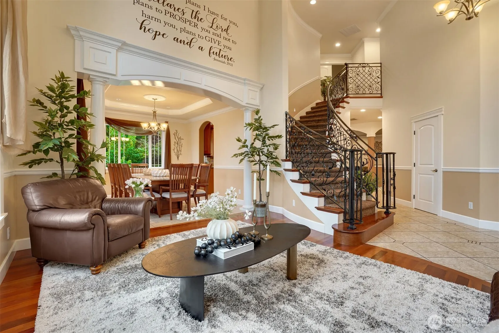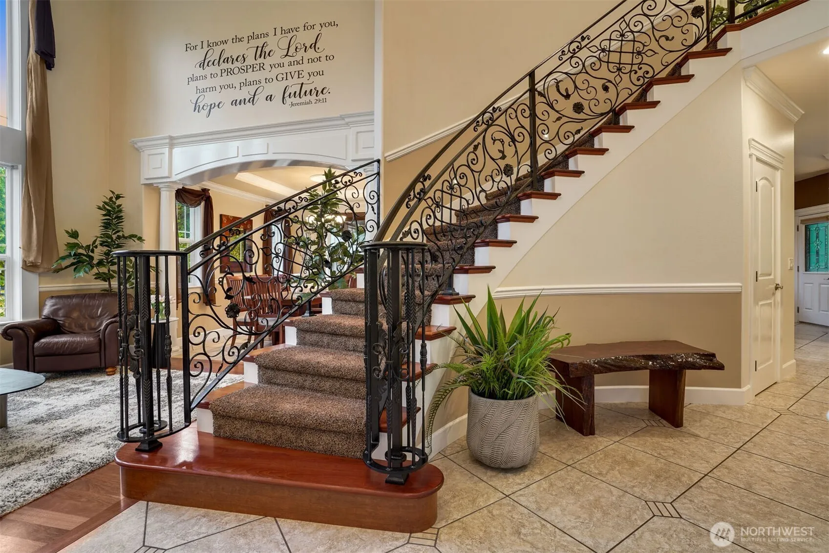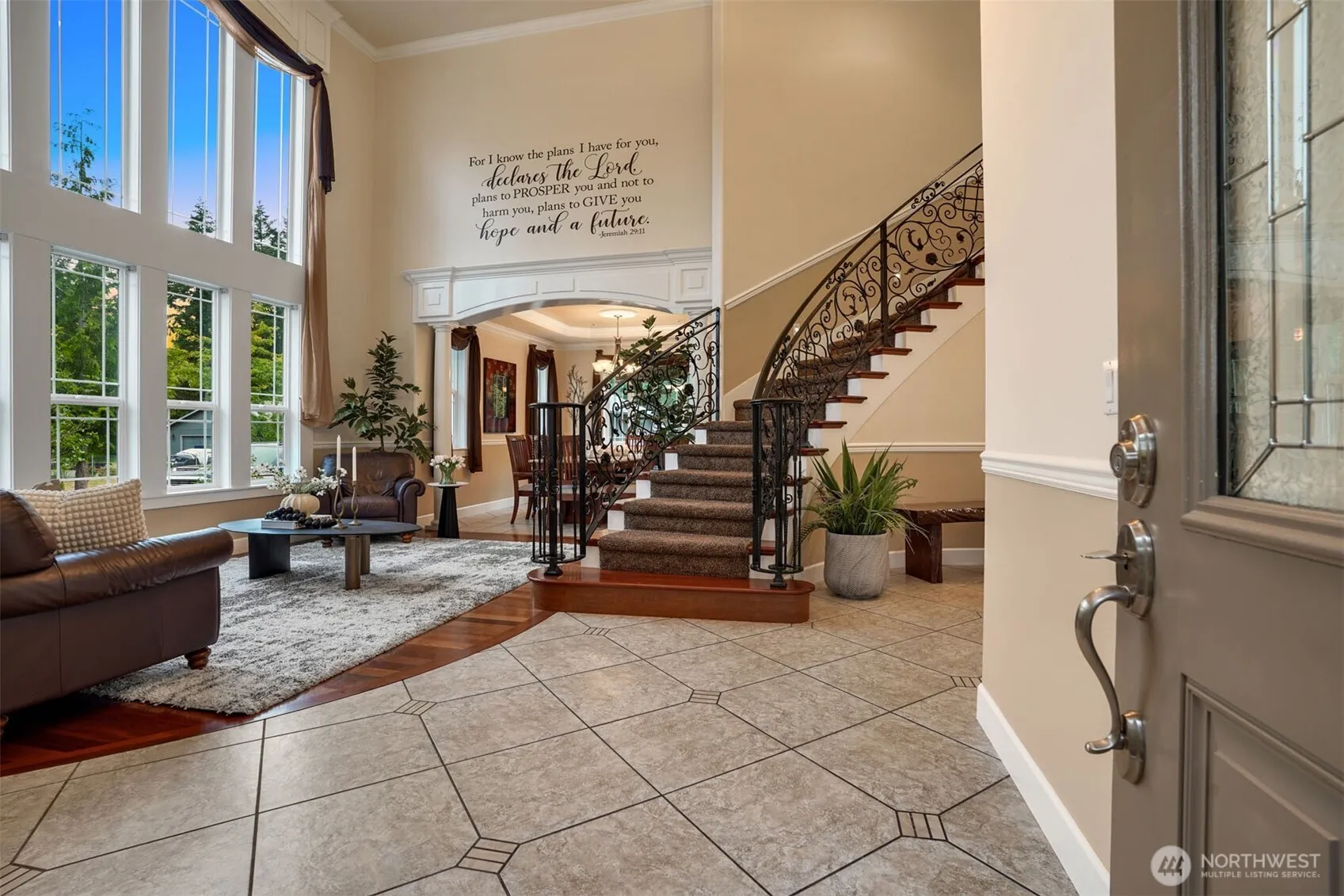 Discover this stunning custom built home on a sprawling 1.27-acre lot.Greeting you with expansive grounds, soaring ceilings, and heated tile floors throughout. Spanning across nearly 3,000sqft featuring 4 bedrooms, an office, and two inviting living areas. Dreamy chefs kitchen with custom cabinetry, spacious granite counter tops, and stainless steal appliances. Boasting a large 24×36 shop and a generously sized driveway, this property offers abundant parking, RV space, and plenty of storage options. Grounds are beautifully enhanced with fruit trees including plum, pear, and walnut trees. Enjoy the added luxury of being on a private greenbelt with a beautiful forest view.Situated just minutes from the upcoming Bethel High School. Peaceful, private, and beautifully maintained, this home combines comfort, style, and functionality in a serene setting.Don’t miss this rare opportunity!