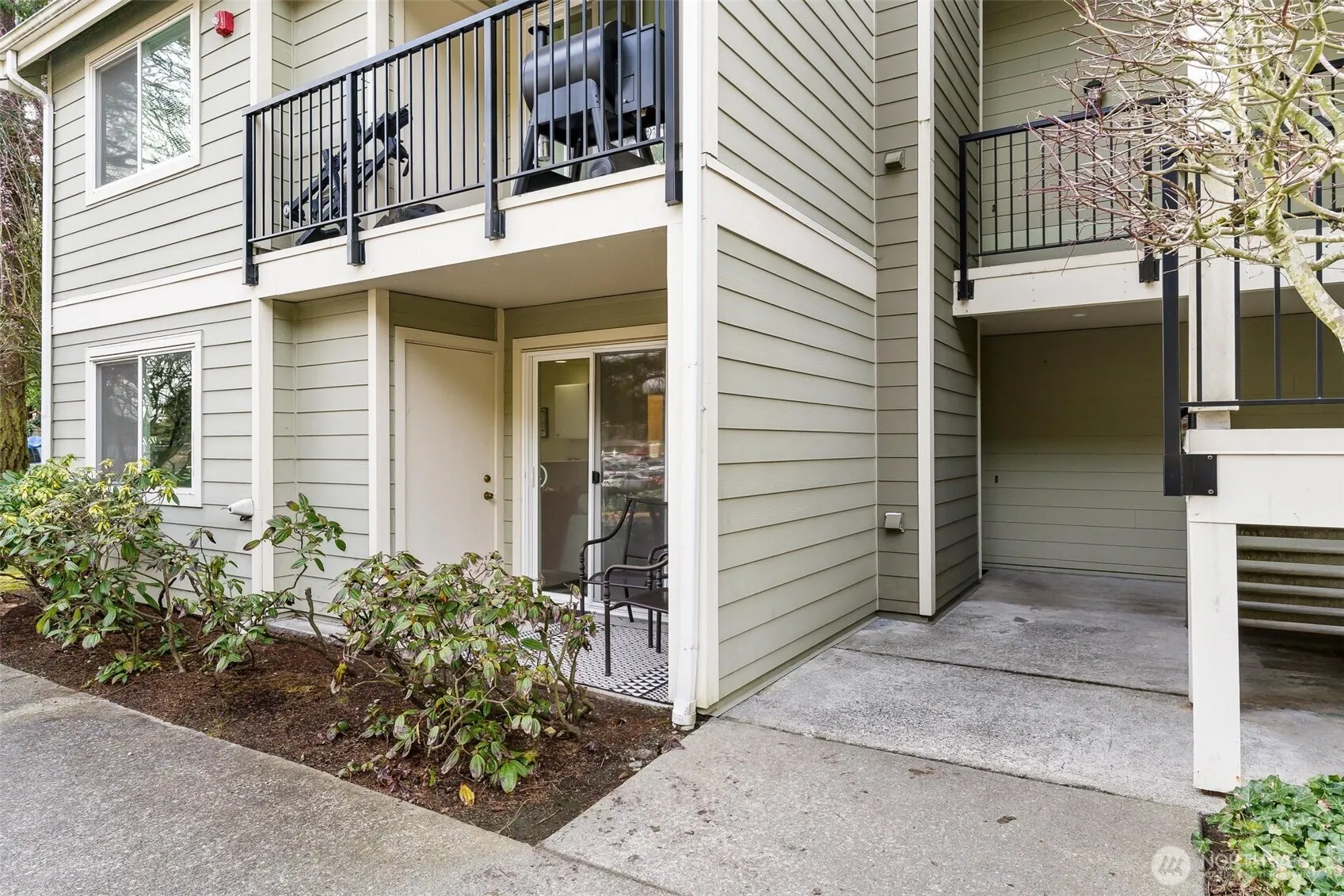 Investment Opportunity! Stylish one-level ground-floor corner condo offering the perfect blend of comfort, convenience, and accessibility—parking right in front of the unit! Enjoy a private entrance and easy access to this move-in ready home featuring a spacious open-concept layout, cozy fireplace, and expansive deck with extra storage. Thoughtfully updated with freshly painted millwork, new designer dining light fixture, new bedroom carpet, new blinds, and a new water heater. Functional full-size utility room with washer & dryer included. Bright kitchen showcases crisp white cabinetry and newer appliances. Ideal for first-time buyers, downsizers, or investors! Nestled in a quiet, peaceful setting with nearby parking, park-like views, and unbeatable walkability—just 2 blocks to Edmonds College and minutes to Trader Joe’s, Starbucks, transit, and I-5.