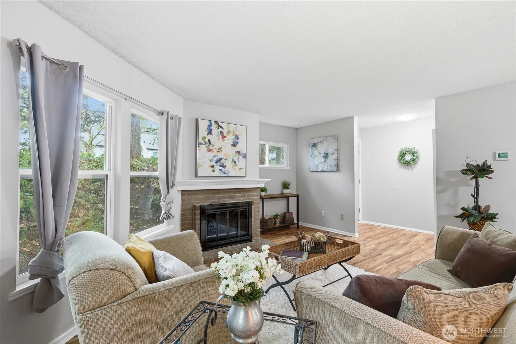 Modern Convenience Meets Serene Living. Nestled in the heart of Bellevue’s Bridle Trails neighborhood, this spacious 2-bedroom, 2-bathroom ground-floor end unit offers the perfect blend of privacy and accessibility. Just blocks from the Microsoft campus and minutes from SR-520, your commute has never been easier. Enjoy an open-concept living area anchored by a cozy wood-burning fireplace, leading out to a charming private patio—ideal for morning coffee. With a little imagination, the oversized utility room provides rare extra space for an office nook, home gym or hobby room – what ever extra space it is you need. Take advantage of community amenities including a pool and clubhouse, all while being situated in the top-rated Bellevue School District. Welcome home to Forest Glade!