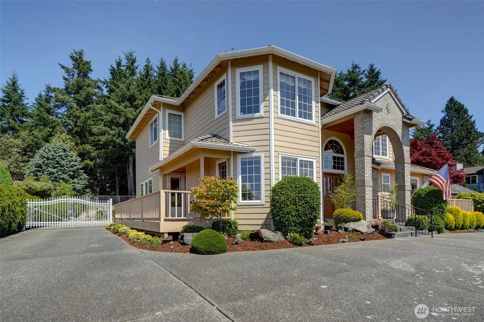 Beautiful home with Narrows views for RENT , custom built, expansive lot, 4 bedrooms, 2.5 baths! Stunning landscaping. Grand foyer with cathedral ceiling, the main floor boasts sun-filled living room, dining room, entertainment kitchen with oversized island, family room, den/office with an extra therapeutic walk-in bath. Grand staircase leads to upper level with 3 bedrooms and a primary suite with beautiful views of the Narrows. Wrap-around deck, tile roof, heat pump, built-in vacuum and fire sprinkler system. Spacious, attached 3-car garage, ample parking for your cars, RV and boat. Effortless spaces accommodate both indoor & outdoor. Easy commute.