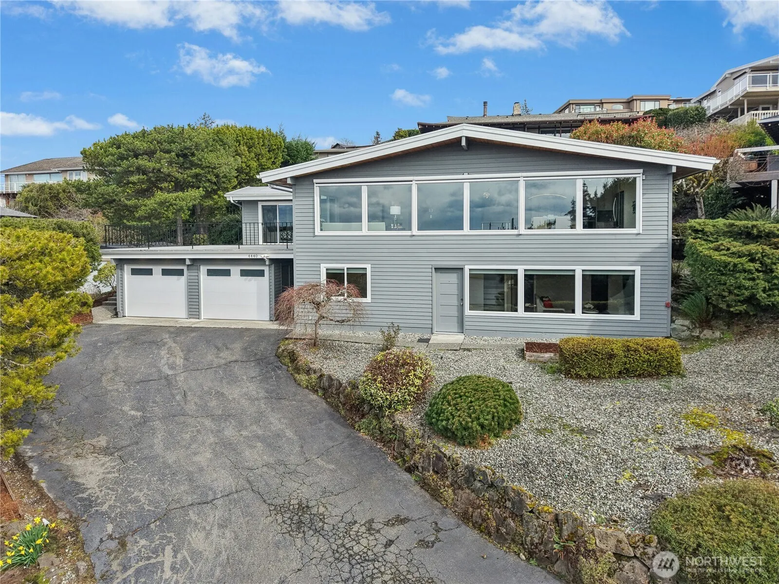 Welcome home to this meticulously maintained and remodeled mid-century Somerset home with breathtaking views and stunning sunsets. Unassuming street presence gives way to a private sanctuary with 270 degree views captured throughout. Open great room features vaulted ceiling, Acacia engineered hardwood floors, sleek modern cable railing, designer light fixtures and floor to ceiling windows. Open kitchen boasts crisp white cabinets, quartz counters, large island, LG/Bosch stainless steel appliances, and on-demand hot and cold filtered water. Oversized Primary Suite with organized closet systems and ensuite bath features double sinks, TOTO brand washlet bidet, heated towel warmer and floors. Huge entertaining deck over the garage is perched above the street and trees to capture and savor the ever-changing views. Lower level features separate entry, 1 full bedroom 3/4 bathroom, family room and plenty of storage and a work shop. Heat pump (A/C) and automatic exterior shades keep you cool in the summer. Have peace of mind and completely turn-key with a new roof, windows and doors in 2019, sewer liner installed in 2014, main water line in 2018, new garage door in 2022, new tankless water heater in 2025, electrical, plumbing and exterior paint.