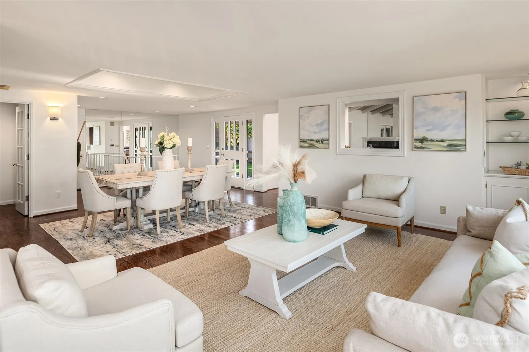 Nestled in the heart of Mercer Island, this mid-island residence captures the very essence of Pacific Northwest living, pairing sweeping west-facing sunset views with fresh, thoughtful updates throughout. A private courtyard entrance creates a warm and welcoming arrival experience, offering both seclusion and architectural charm before stepping inside. The main living areas and primary suite are ideally positioned to showcase vistas of Lake Washington, the Downtown Seattle skyline, and the majestic Olympic Mountains. Vaulted ceilings elevate the gathering room, where an open-concept kitchen flows effortlessly into light-filled spaces designed for both daily comfort and refined entertaining, while multiple decks seamlessly extend living spaces outdoors. Fresh interior paint, new carpeting, and beautifully updated kitchen and primary bath create a truly move-in ready experience. Beyond the main living spaces, the home continues to impress with a dedicated view studio providing inspiring space for artistic pursuits or a private office and a detached ADU offering exceptional flexibility for guest accommodations or revenue potential.