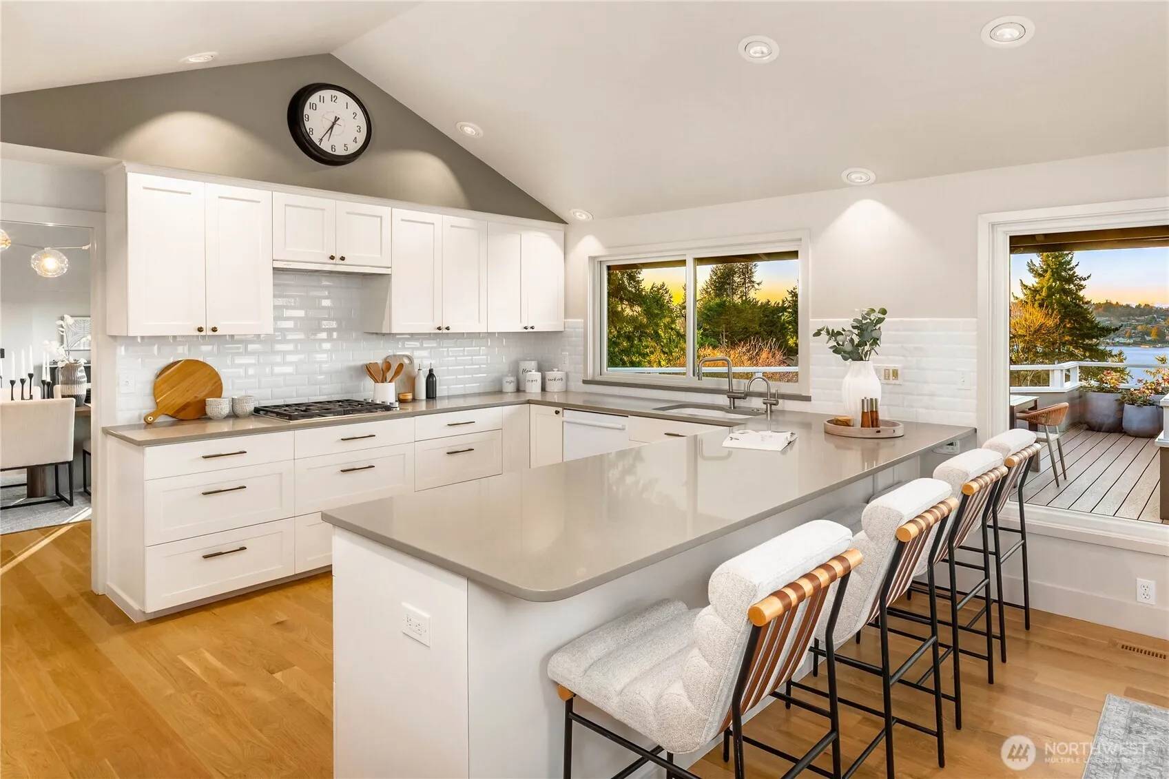 Sublime vast Lake Washington, Olympic mountains, Seward Park & twinkling city views from this iconic Westside neighborhood with protected views. There is an ease and energy in this NW inspired home, that was sited to enjoy daily life. Captivating sunsets, multiple outdoor spaces, from a sports sized lawn, to European inspired gardens and decks that are true outside rooms. Inside, an architects eye updated with a palette of neutrals, providing quality, texture and interest. Vaulted ceilings throughout the main floor. Oversized entertaining areas, primary on main, plus an additional 4 bedrooms, bonus and flex spaces-all with views everywhere you turn. All of the wish list is here-come be mesmerized!
