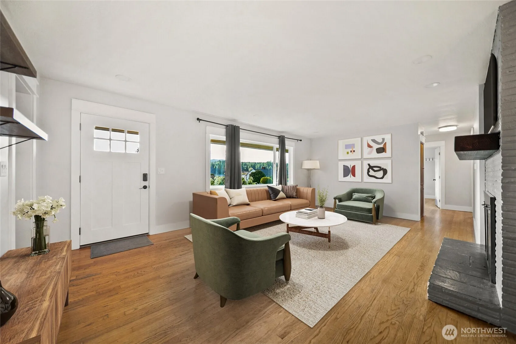 Discover the charm of one-level living in the delightful Kitsap Lake neighborhood, where your beautifully updated rambler awaits. This move-in ready, 3-bedroom, 1-bath home boasts numerous recent enhancements. The fresh exterior features new cement siding, vibrant paint, vinyl windows, and a brand-new roof. The welcoming entrance showcases new doors, elegant casings, and wainscoting, all with a fresh coat of paint. Inside, a spacious living room offers bright picture windows and original hardwood floors. Unwind by the cozy fireplace while enjoying stunning mountain and lake views. The kitchen, equipped with new stainless-steel appliances, a breakfast island, and a walk-in pantry, features a large window overlooking the fully fenced backyard, complete with a swing set and fire pit. The patio off the kitchen is ideal for year-round entertainment. A mini-split system ensures comfortable heat and AC, while a 240-volt outlet in the garage adds convenience. Ample parking is available for your RV or boat. Connected to the City sewer, this property also has expansion potential for add-ons, a shop, a garage, or even an accessory dwelling unit (ADU). Conveniently located near all amenities, a neighborhood grocery store, restaurants, a public lake park and boat launch, and situated between Silverdale and Bremerton, it’s just a short distance from Naval bases and the Seattle ferry. Don’t miss the chance to own this exquisite home!