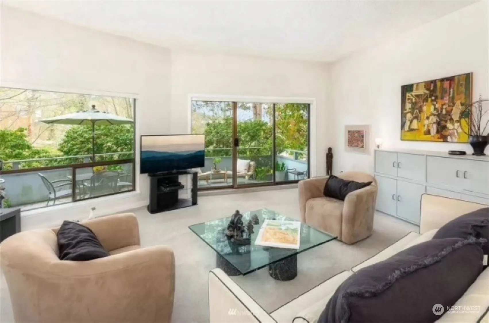Beautiful Mercer Island end-unit condo on main floor! Spacious layout, light-filled living room w/ large windows & views of the surrounding area, modern kitchen w/ SS appliances & ample cabinet space. Primary suite w/ private 1/2 bath, and a 2nd bedroom perfect for guests or for an office space, or a cozy den. Updated bathrooms with contemporary fixtures and finishes. Located in a desirable neighborhood with excellent Mercer Island schools, shopping, transport,and dining nearby.