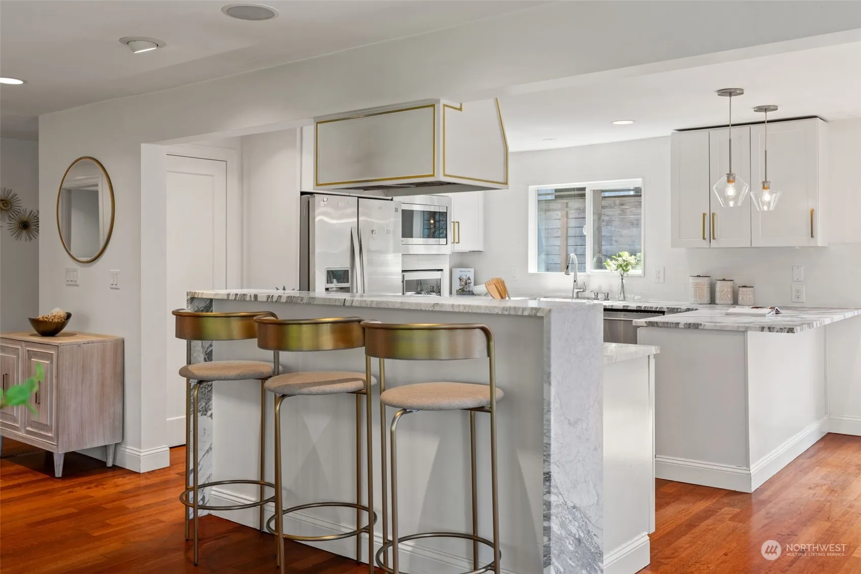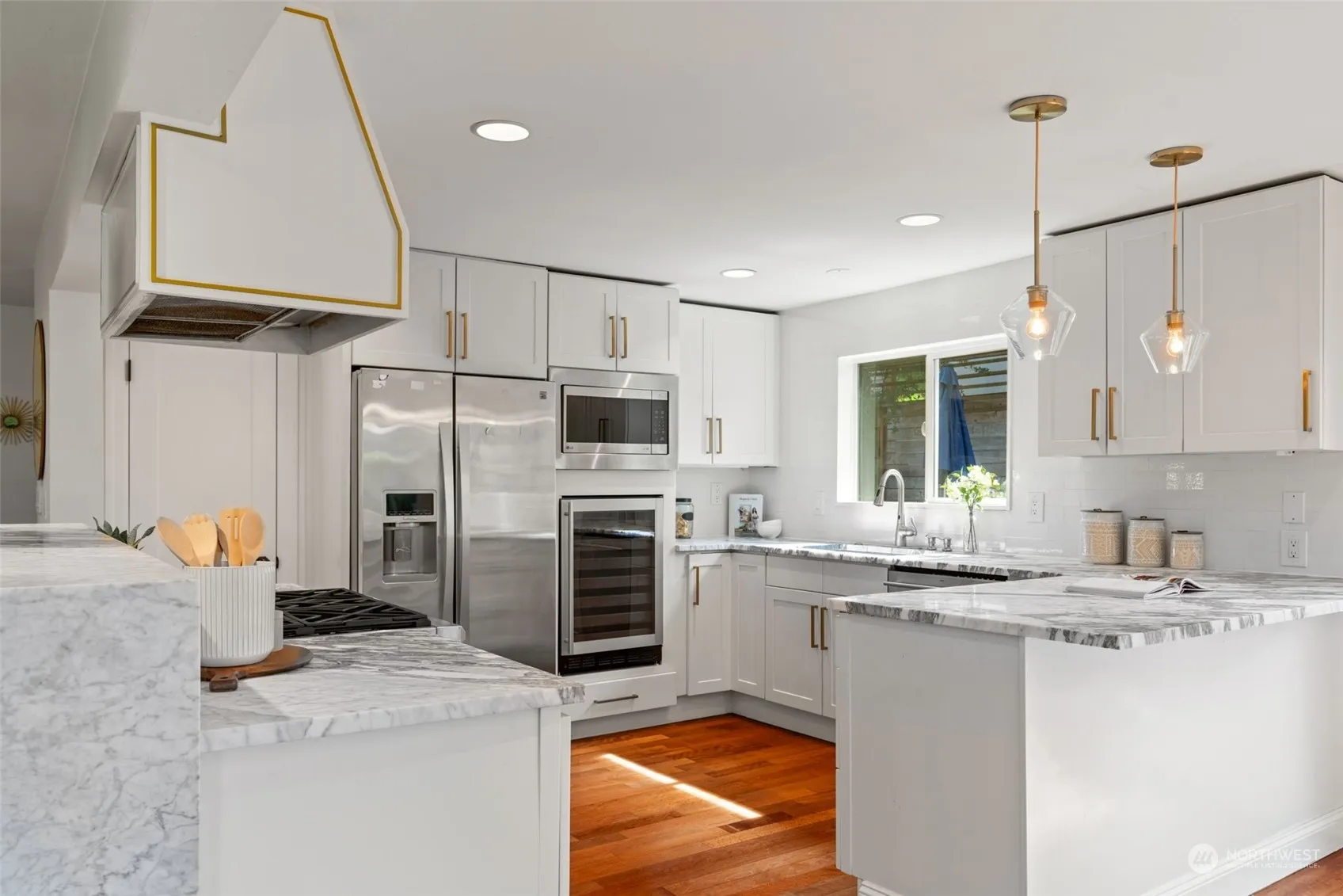 Seamlessly combined comfort and convenience awaits at this charming residence in coveted Faben Point. Open-concept living plus sizable decks, patio & new covered area provide the perfect blend of indoor/outdoor entertainment space. With an abundance of natural light, you’ll enjoy modern ambiance, a beautifully updated kitchen, Carrara and quartz counters, stainless appliances, refinished hardwoods, & more. Large primary suite boasts a delightful 5-piece bath & spacious walk-in by California Closets. Bonus room for nursery/office/gym, finished 2-car garage with ample storage, central air conditioning, lush garden space and privacy landscaping. Ideally located just minutes to downtown, shops, dining, parks, freeway access & Seattle/Bellevue.