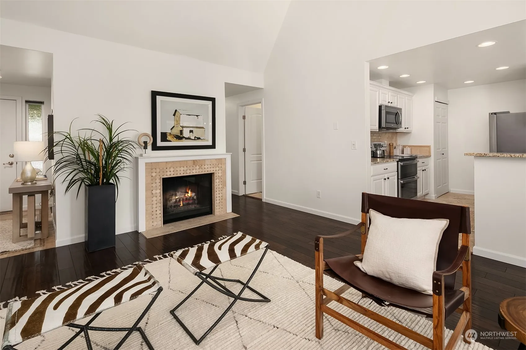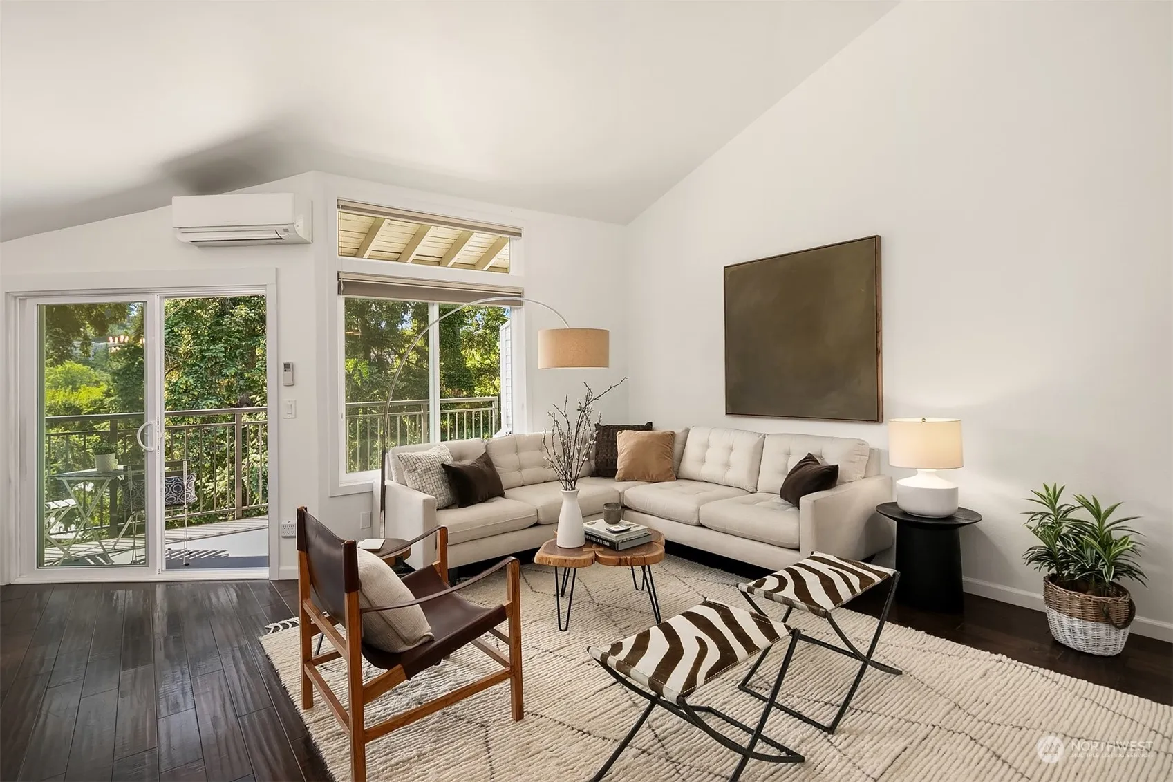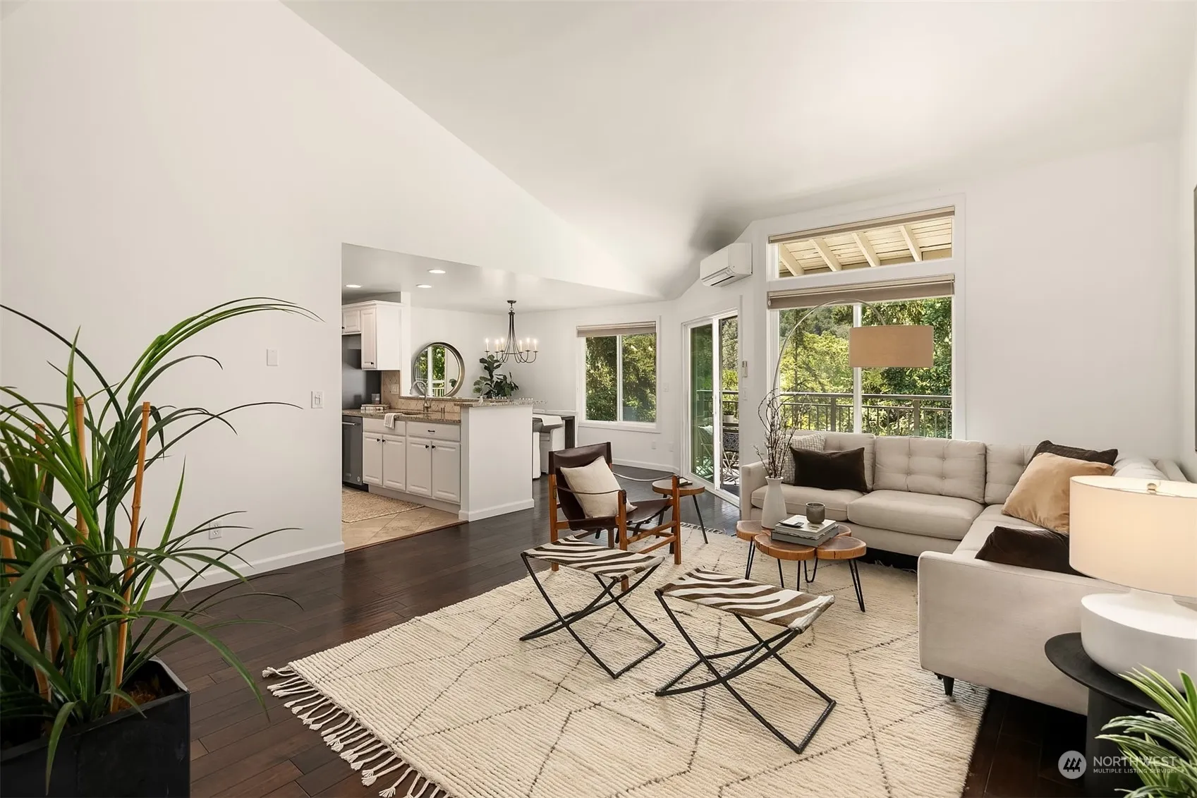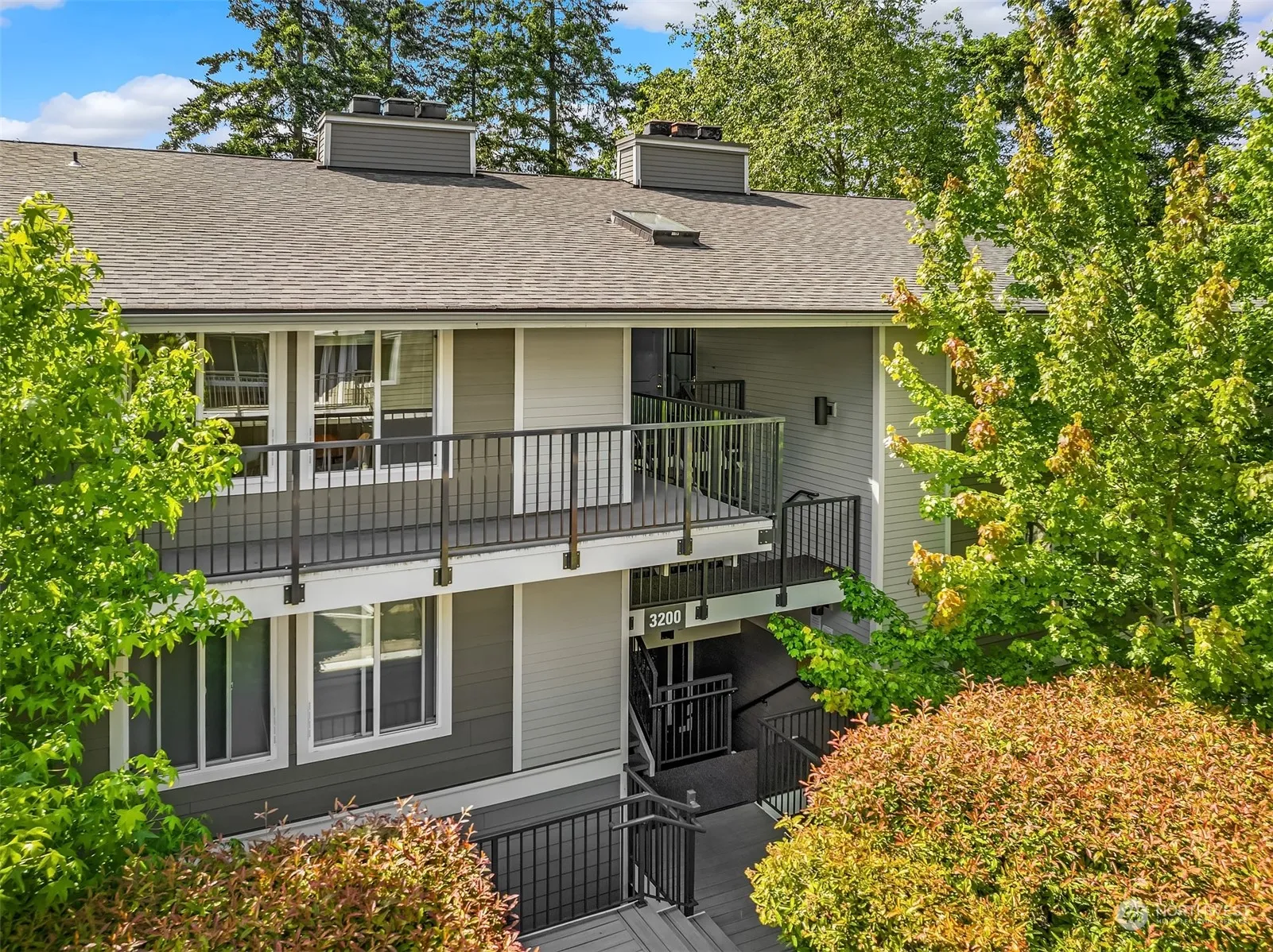 A Rarely available Woodlake Top Floor, west facing home w/Views to Mercerdale Park. Enjoy a lovely, open floor plan with a vaulted ceiling living room & wood burning fireplace leading to a large deck. Numerous updates include A/C, solid surface granite countertops, Stainless appliances, white painted Maple cabinets, hand scraped espresso stained maple flooring, travertine in the baths & fireplace mantel & raised 6 panel doors. Private & secure storage is adjacent the covered parking space. Plenty of guest parking & no rental cap! Recent exterior renovations include new decks, windows, siding & roof. Amenities include outdoor pool & clubhouse. Excellent local makes living easy with shopping, restaurants, parks & I-90 right out your door.
